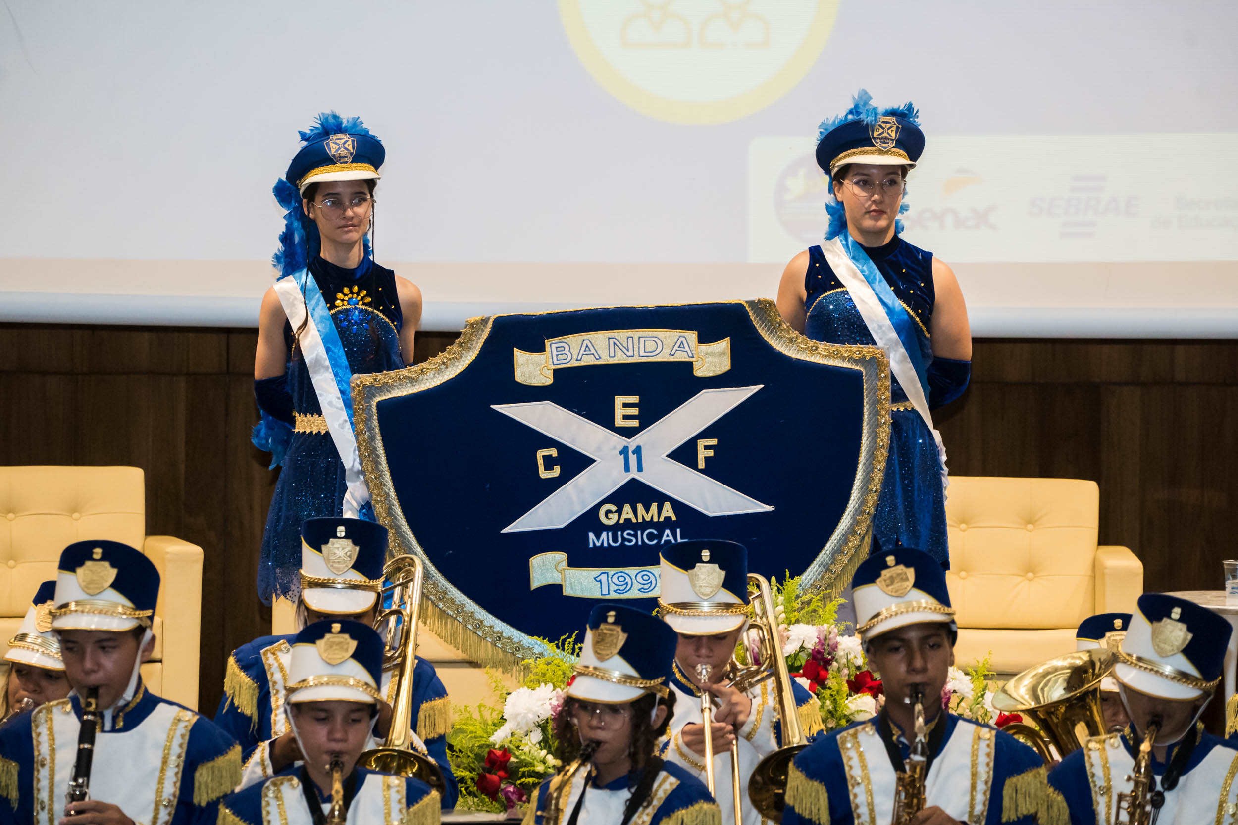 A banda do CEF 11 do Gama, uma das escolas participantes da I Mostra de ETI, se apresentou na abertura do encontro | Foto: Jotta Casttro/SEEDF