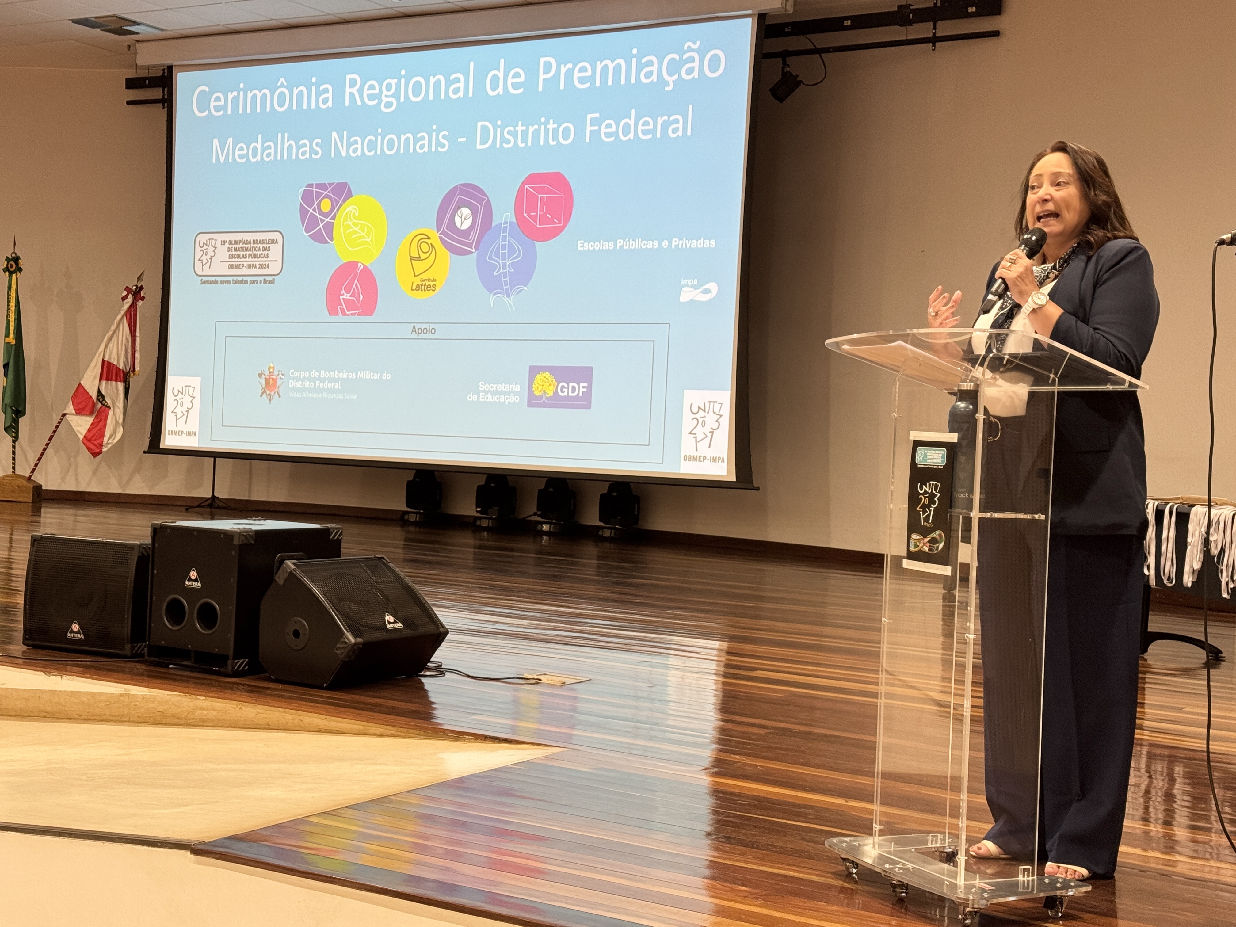 Marcada pela emoção dos medalhistas e pelo orgulho estampado no rosto dos familiares, a cerimônia regional de premiação da 19ª Olimpíada Brasileira de Matemática das Escolas Públicas (OBMEP) reuniu estudantes, professores e representantes das escolas para a entrega de medalhas e prêmios nacionais. O evento ocorreu na quarta-feira (24), no Auditório da Academia de Bombeiros Militares, no Setor Policial Sul, em Brasília.