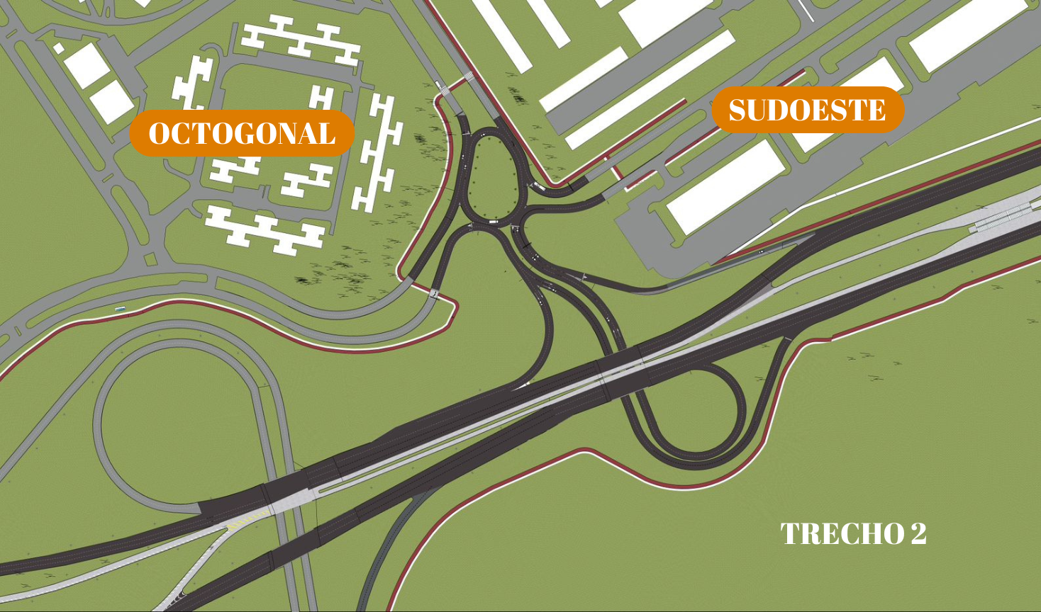 O segundo trecho, localizado no intervalo entre o viaduto do Setor Policial Sul e a interseção entre Epig/Sudoeste/Parque da Cidade, prevê a implantação do corredor BRT e a construção de três viadutos, além de instalação de ciclovias, obras de drenagem, pavimentação, sinalização, paisagismo, calçadas e mobiliário urbano.