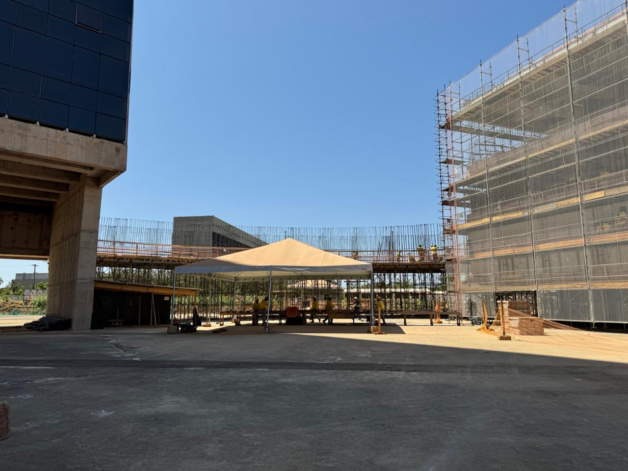 Responsável por uma equipe de cerca de 80 funcionários, o diretor da Coordenadoria de Obras da Nova Sede do TRF1, o engenheiro Gabriel Del Duca, lembra também que a construção segue por outras frentes como o reforço da fundação e dos pilares, bem como na armadura do piso e das paredes, a empena de concreto e o fundo do Bloco C, após a finalização da segunda e da terceira lajes do prédio.