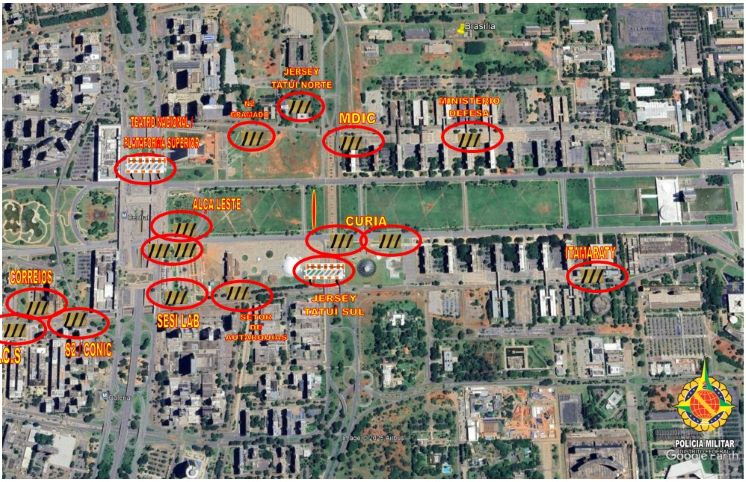 • A PMDF utilizará barreiras New Jersey e bloqueios físicos rígidos para impedir invasões de veículos não autorizados e garantir a proteção dos pedestres.