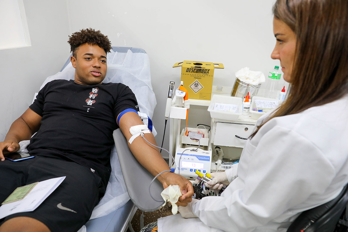 Já a aluna Andressa Carvalho, 17, contou que aceitou o convite para doar sangue como uma forma de enfrentar um trauma de infância. Quando era mais nova, ao fazer um exame, sofreu com múltiplas tentativas de coleta devido às veias finas, o que a deixou roxa nos dois braços e em pânico. “Eu gritava muito, chorava, e precisaram de três pessoas para me segurar. Desde então, fiquei com esse medo”, relatou. Apesar disso, decidiu encarar a experiência e transformar o desafio em um gesto solidário. “Estou aqui hoje para enfrentar meu medo e também para ajudar o próximo”, afirmou.