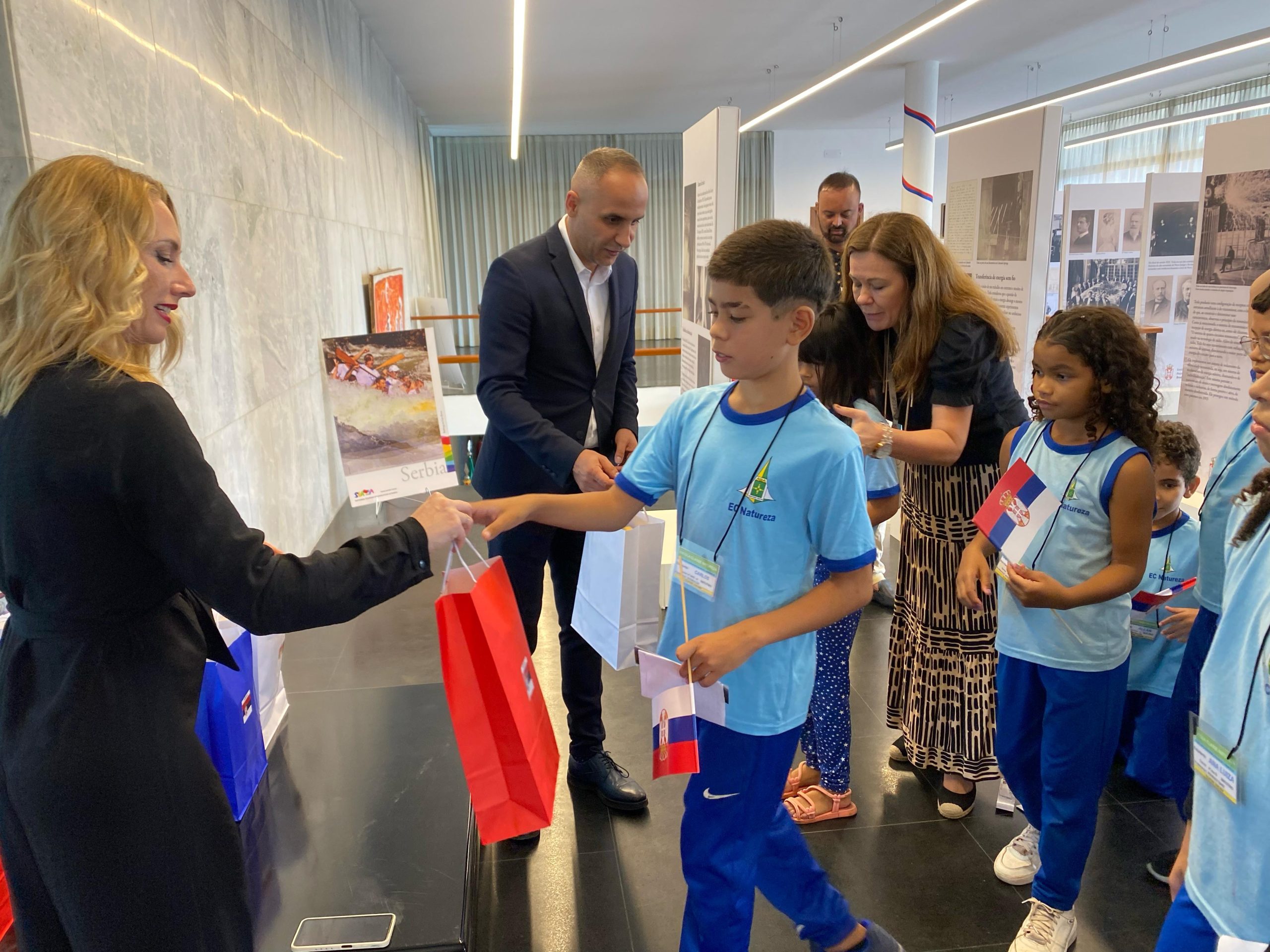 “De tudo, o que eu mais gostei foi aprender a escrever o meu nome em sérvio”, contou o estudante Antônio Elias César da Silva, de 9 anos. “Achei bem fácil e vou ensinar minha mãe e meu irmão de 12 anos quando chegar em casa”, gabou-se. Todos os alunos receberam o abecedário sérvio e a orientação do próprio embaixador Aleksandar Ristić, que fez questão de auxiliar os estudantes na grafia certa dos nomes.
