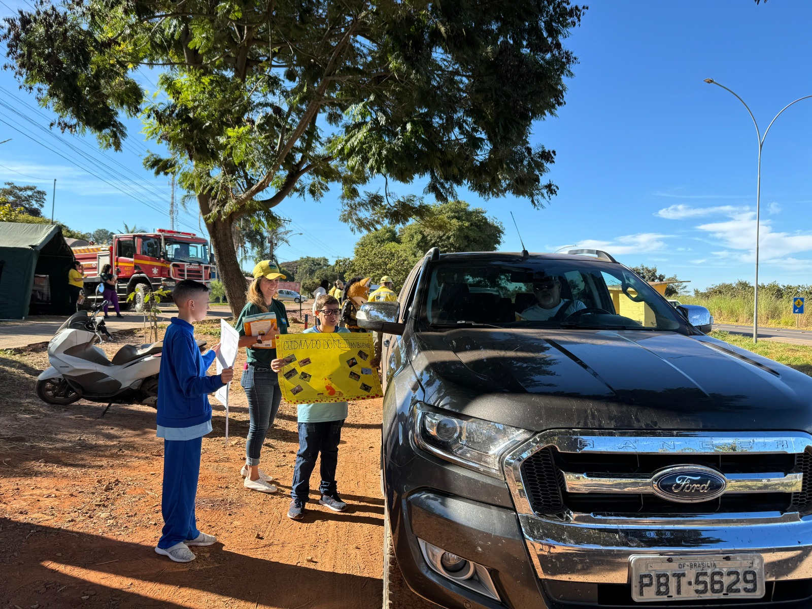 A entrada da Vila Basevi, em Sobradinho, na DF-001, foi palco da 2ª Blitz Educativa de Prevenção dos Incêndios Florestais, realizada na manhã desta sexta-feira (24). O evento, que aconteceu das 8h às 12h, contou com a presença de vários órgãos ambientais e autoridades locais, além de 30 estudantes da Escola Professor Carlos Mota.