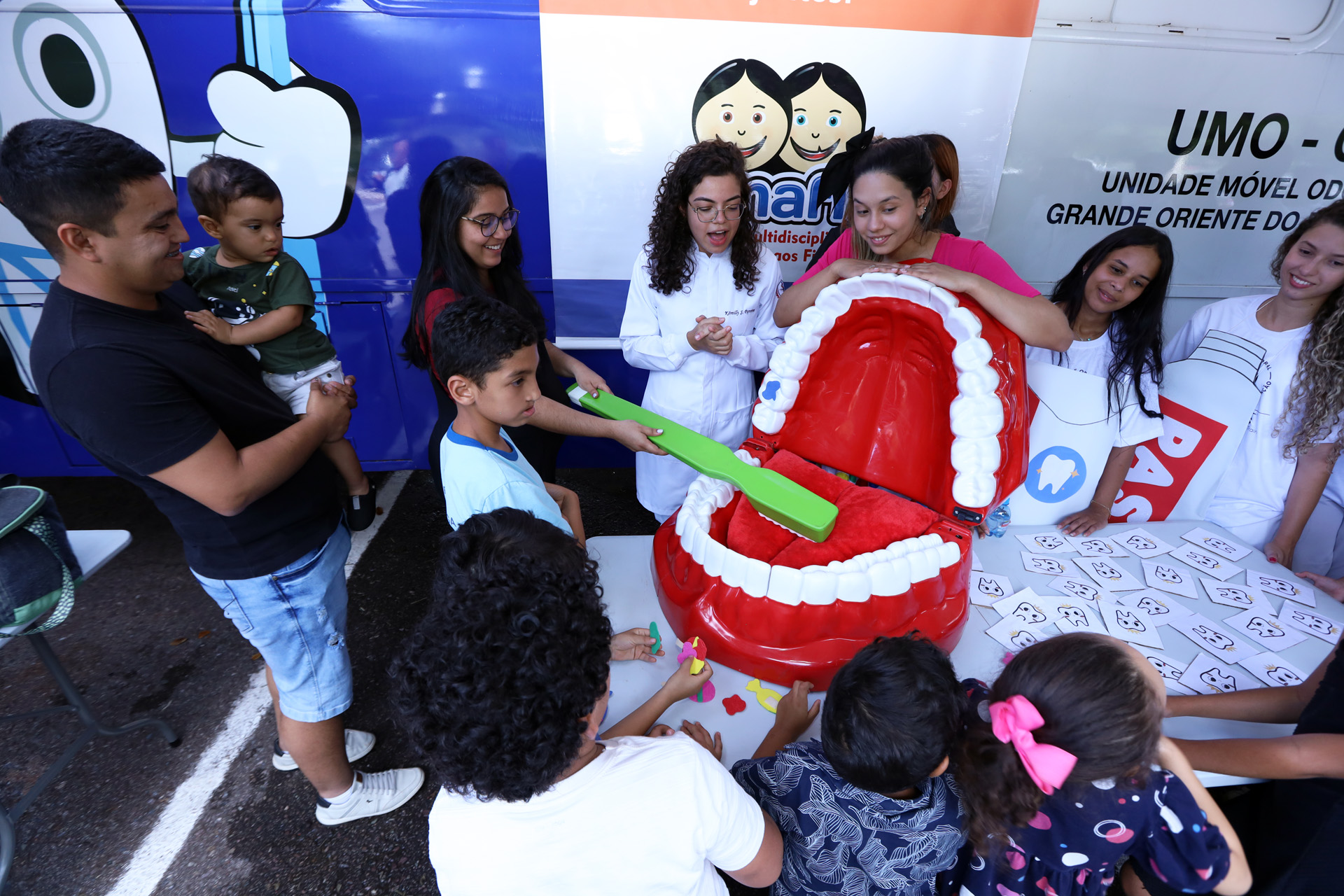 Em comemoração ao Dia Mundial da Saúde Bucal, celebrado nesta quinta-feira (20), o Serviço Multidisciplinar de Atendimento aos Fissurados do Hospital Regional da Asa Norte (Smafis/Hran) organizou, nesta semana (17), um evento educativo a pacientes pediátricos, pais e responsáveis. Fora do prédio, no estacionamento da unidade, uma escova de dente se juntava à pasta e ao fio dental contra uma cárie, divertindo e ensinando ao mesmo tempo.