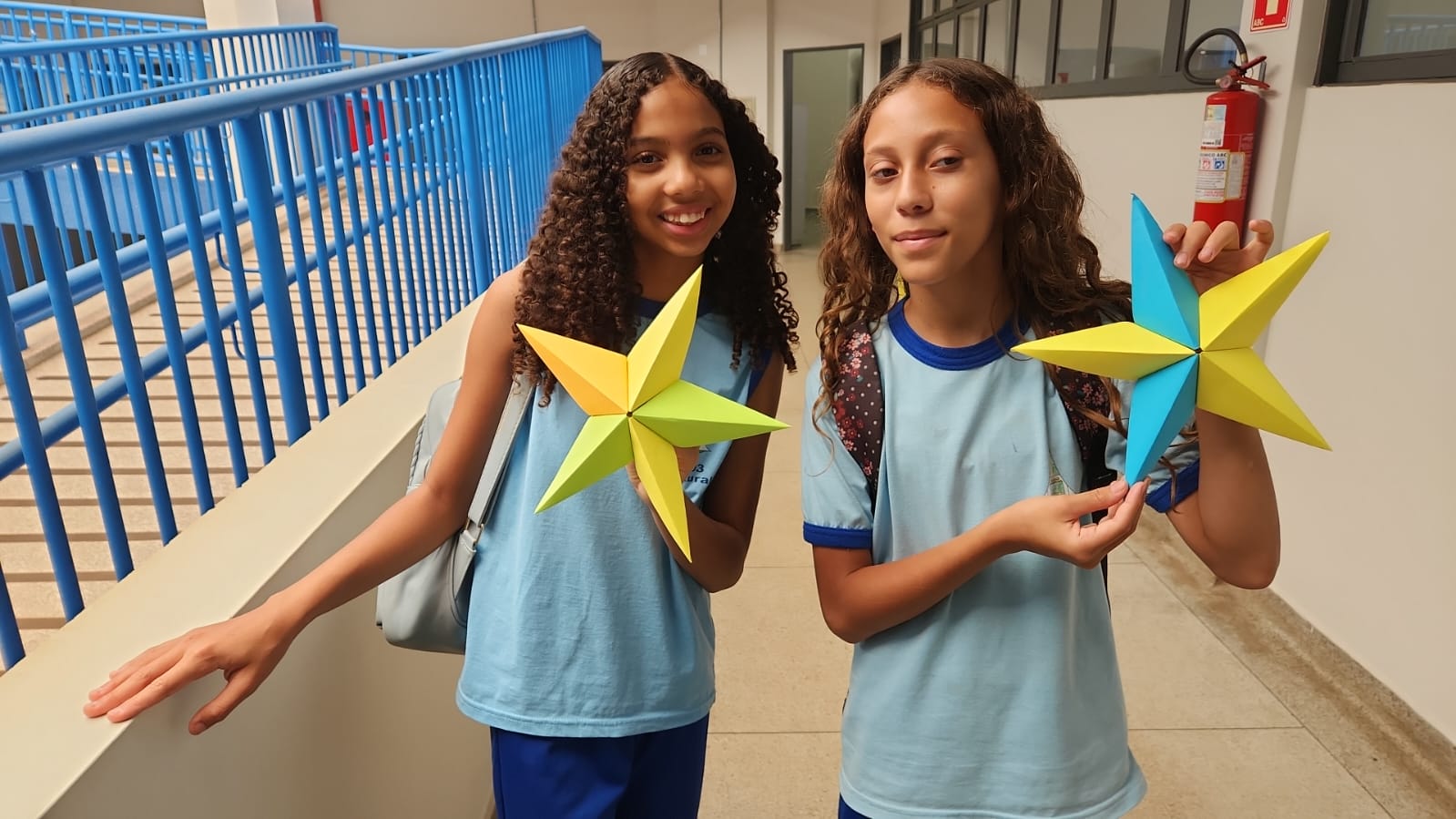 Sabrina de Souza e Dhafiny Sofia se surpreenderam com a aplicação da geometria nos enfeites de Natal