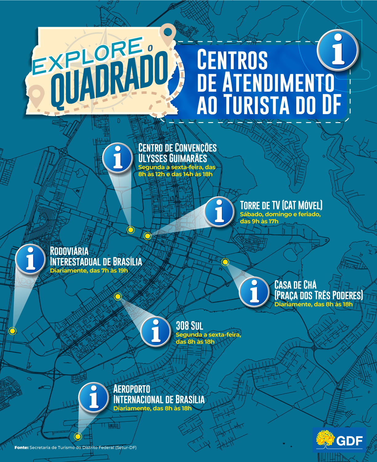 Todos os dias quando atende alguém em um dos Centros de Atendimento ao Turista (CAT), da Secretaria de Turismo do Distrito Federal (Setur-DF), a guia de turismo Samara Augusto faz a mesma pergunta: “Você conhece Brasília?” O questionamento é mais profundo do que parece. O objetivo não é saber se o visitante já esteve na cidade ou se nasceu na capital federal, mas se teve oportunidade de experienciar de fato a essência do Quadradinho.