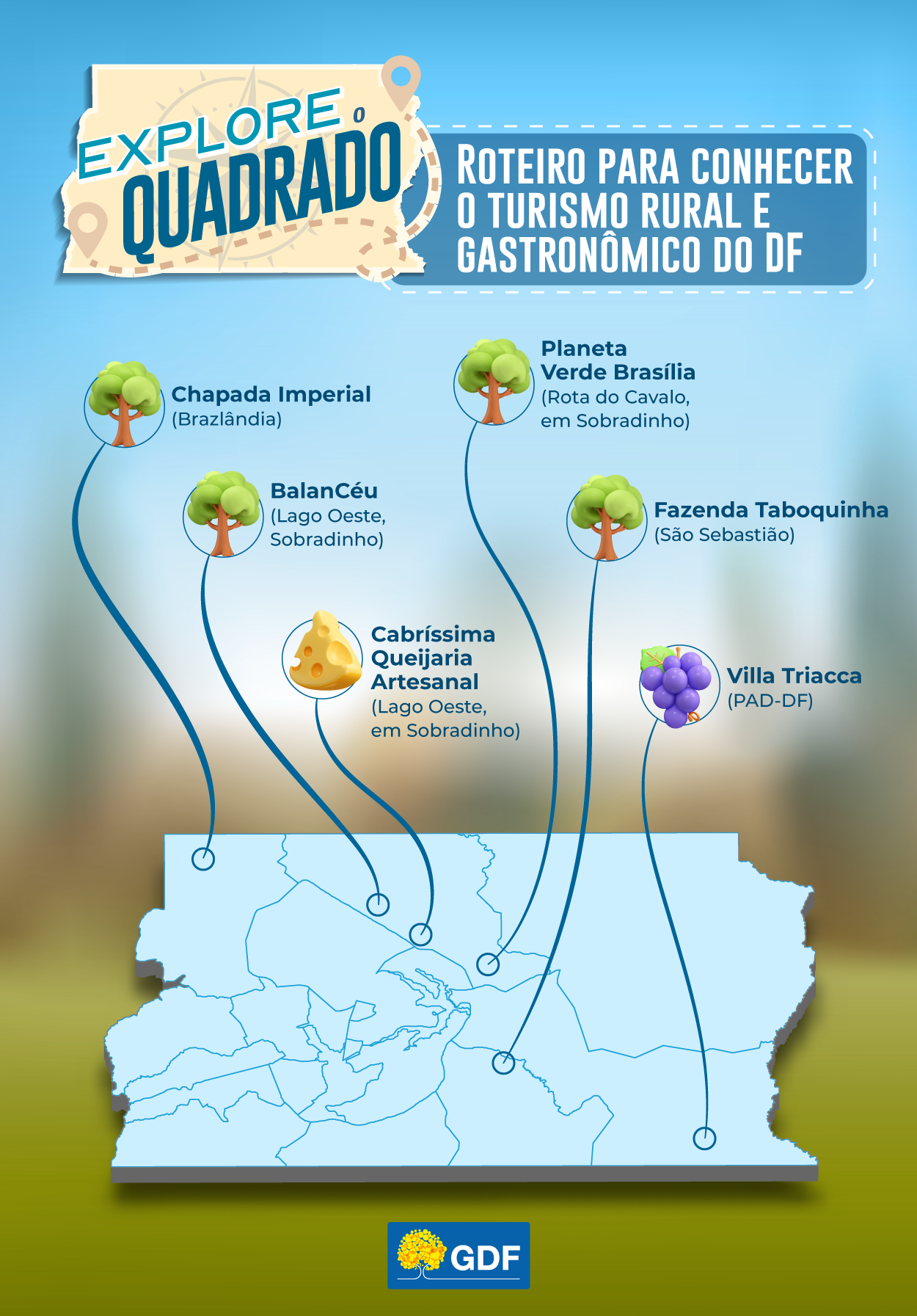 “O turismo rural em Brasília é surpreendente. Nossa capital oferece uma enorme variedade de atrações para os visitantes. São inúmeras cachoeiras, propriedades rurais e paisagens. Além disso, Brasília é o terceiro polo gastronômico do país, oferecendo uma gastronomia diversificada que representa diferentes regiões do Brasil e países, proporcionando uma experiência única aos nossos turistas”, ressalta Araújo.