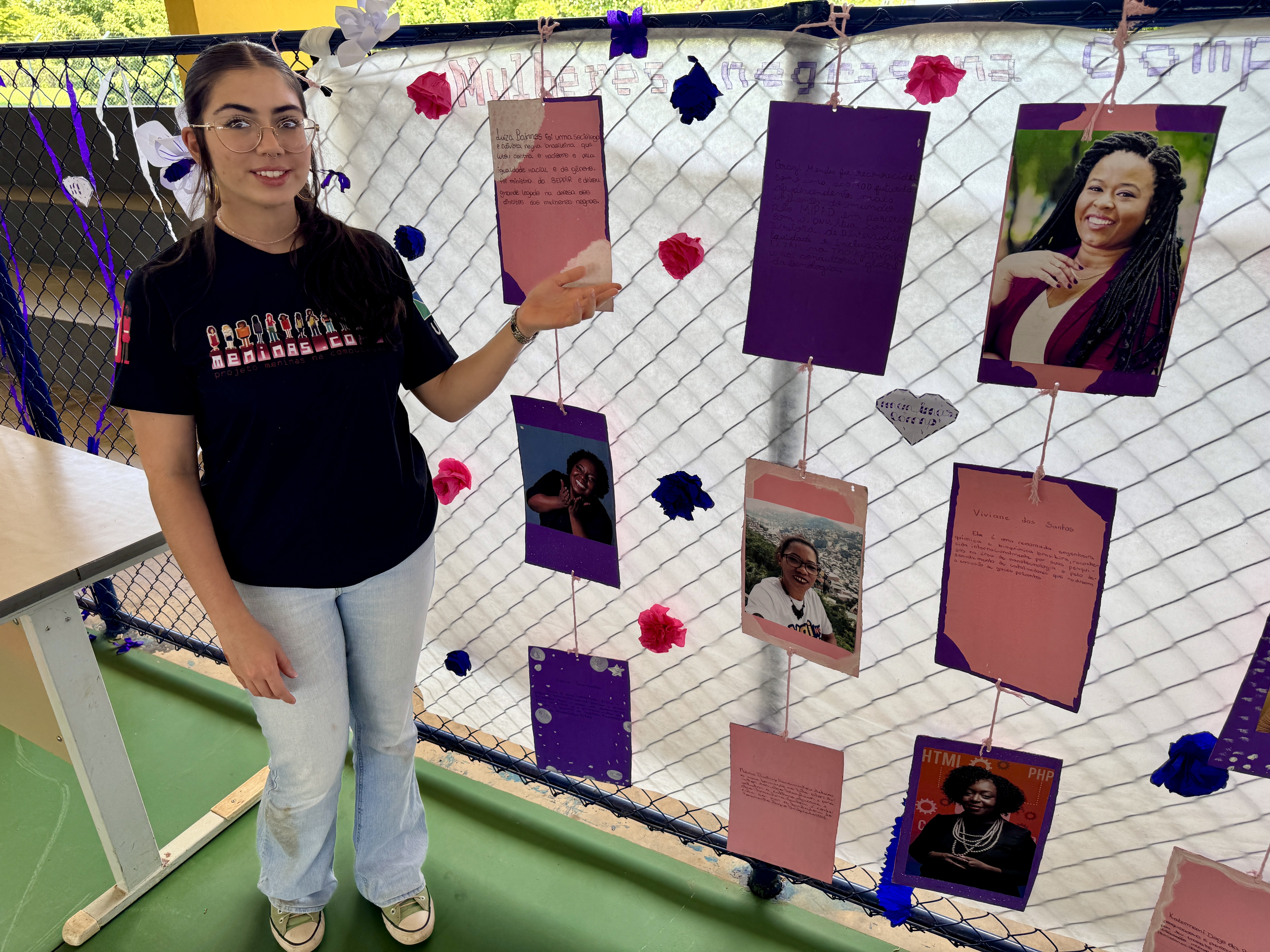Aluna da 2ª série, Sara Reis, 17 anos, participou da feira representando o projeto Meninas.com, grupo da Universidade de Brasília (UnB) que incentiva a presença de mulheres nas áreas de tecnologia e ciência da computação. O objetivo da apresentação foi destacar a contribuição de mulheres negras e brasileiras que tiveram papel fundamental nessas áreas, mas que ainda recebem pouca visibilidade.