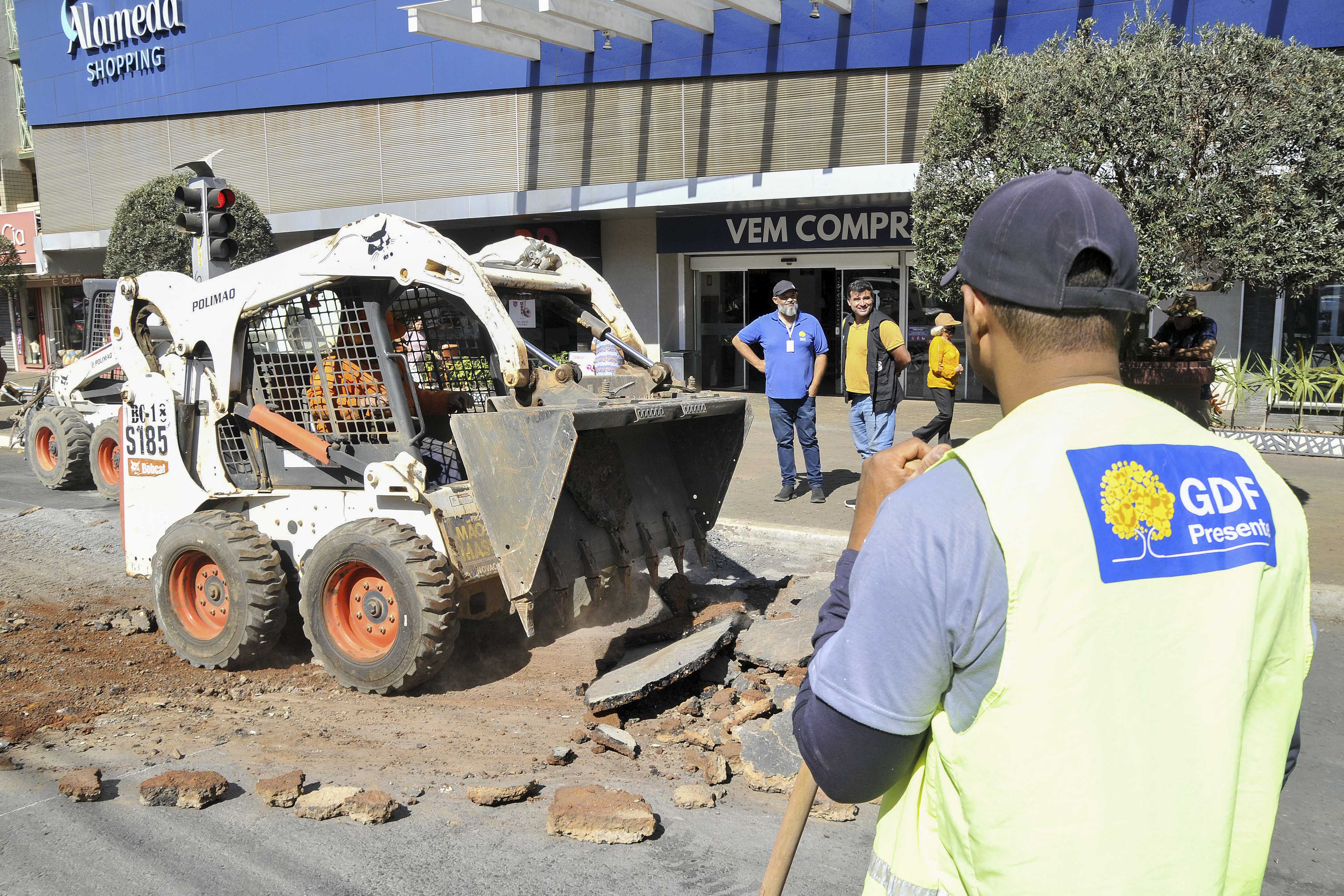 A fresagem teve início em frente ao Alameda Shopping, em uma obra que inclui as faixas na direção do Marista. “É por meio dessas parcerias que conseguimos dar suporte e melhorar a qualidade de vida das pessoas que vivem nas cidades que atendemos”, ressalta o coordenador do Polo Oeste II do GDF Presente, Rodrigo Caverna. “Nosso objetivo é fazer o governo acontecer na porta da casa de cada morador.”