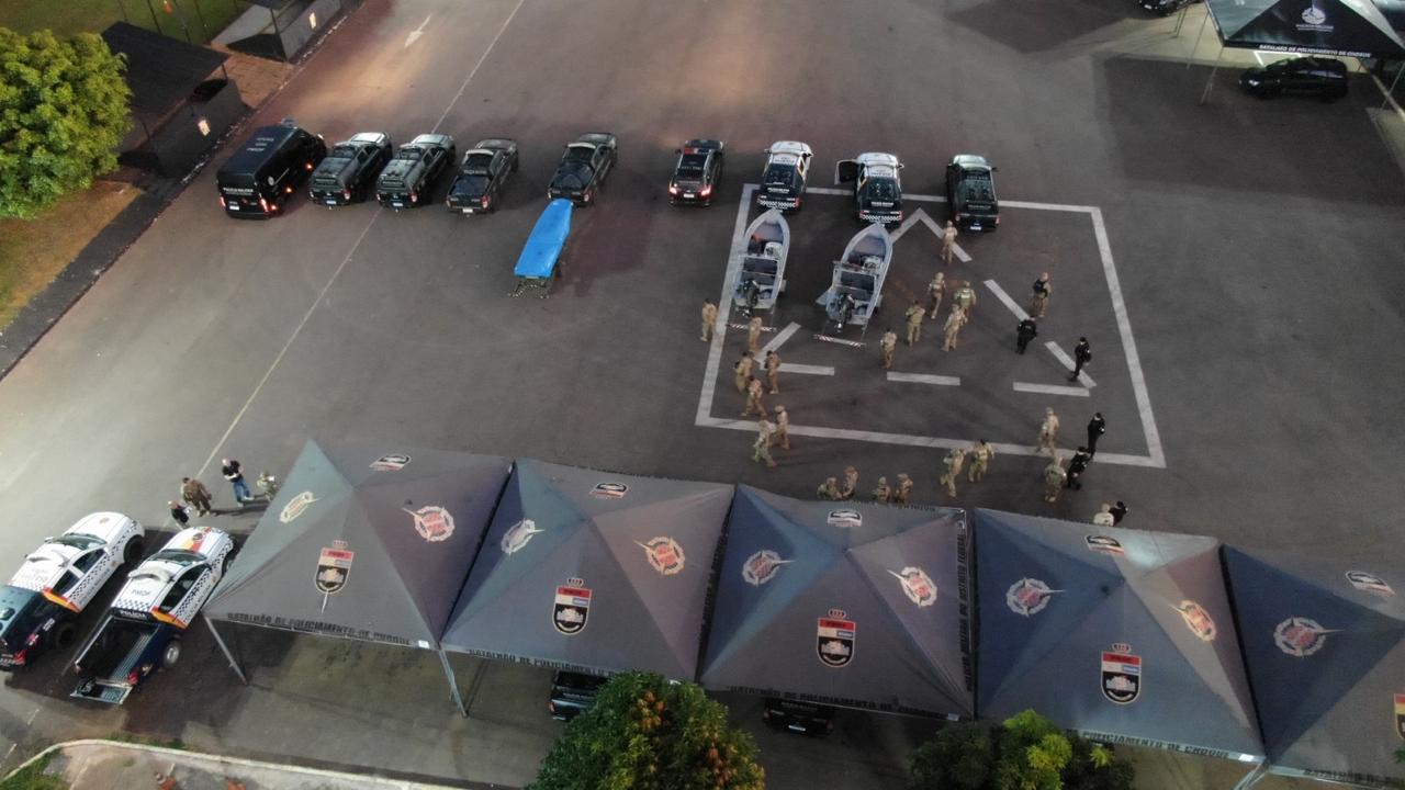 A força-tarefa é composta por 25 militares, incluindo integrantes do Batalhão de Operações Policiais Especiais (Bope), do Patrulhamento Tático Móvel (Patamo), do Batalhão de Polícia Militar Ambiental (BPMA), além de dois cachorros do Batalhão de Policiamento com Cães (BPCães), nove viaturas e três lanchas.