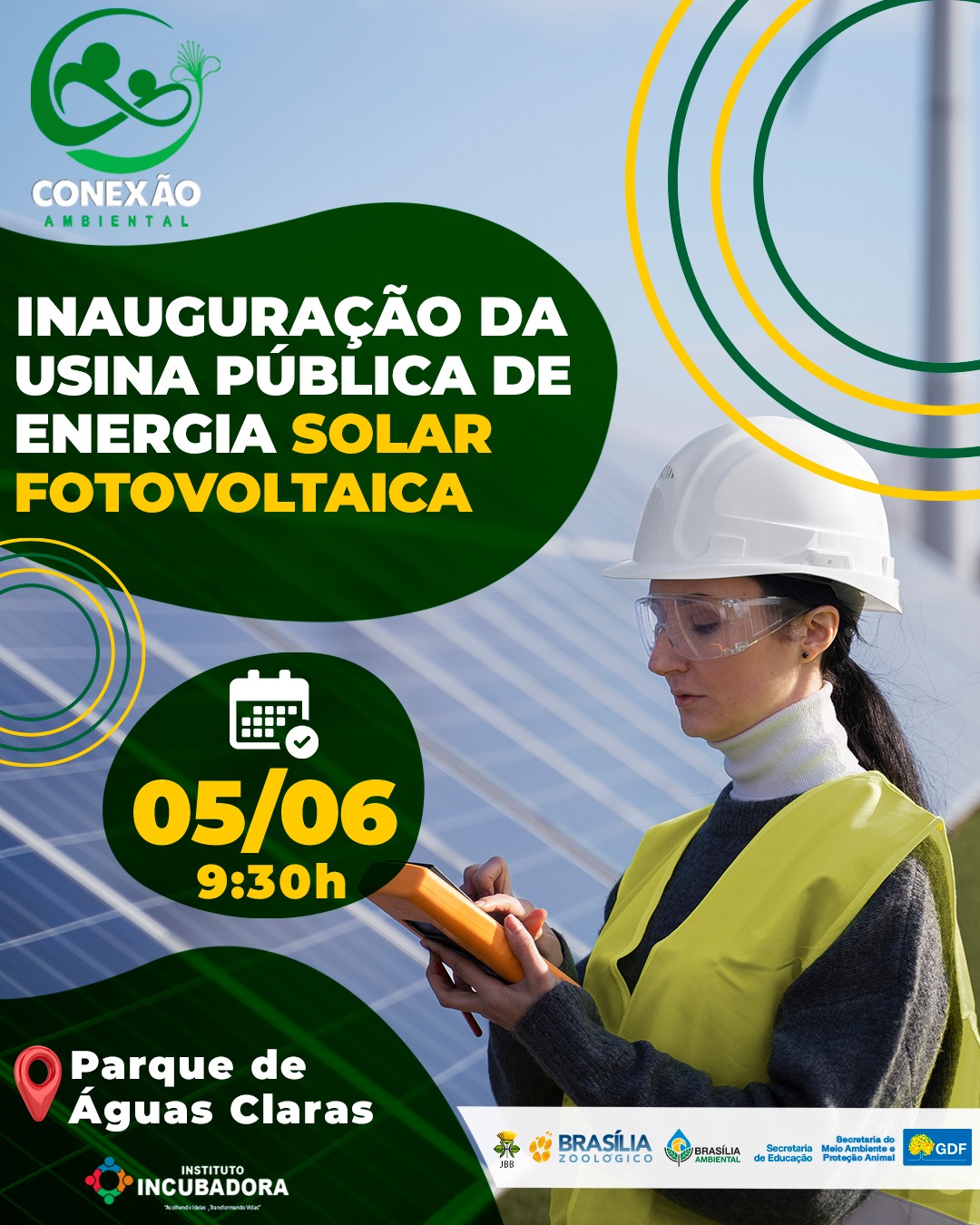 Na próxima quarta-feira (5), em celebração ao Dia Mundial do Meio Ambiente, o GDF irá inaugurar a 1ª Usina Pública de Energia Solar Fotovoltaica do Distrito Federal, destinada a atender prédios do setor público. Este projeto inovador, que reflete o compromisso do GDF com a sustentabilidade, foi construído no Parque Ecológico de Águas Claras e vai fornecer energia elétrica a 80 prédios públicos do DF.