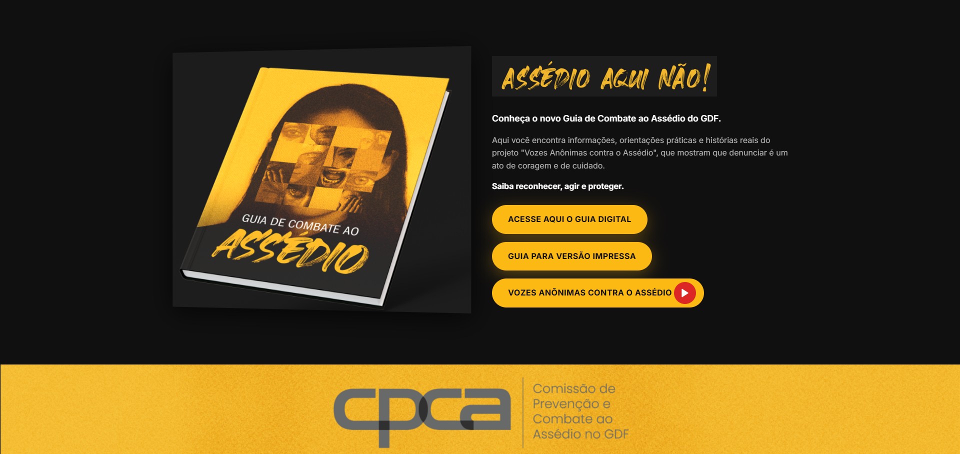 A Comissão Especial de Combate e Prevenção ao Assédio do GDF lançou o Guia de Combate ao Assédio do Distrito Federal, publicação que reúne orientações práticas para a prevenção, identificação e enfrentamento de situações de assédio no ambiente de trabalho. O material foi desenvolvido com linguagem acessível como instrumento de apoio a gestores, servidores e cidadãos, para auxiliar na construção de ambientes de trabalho mais seguros e respeitosos.