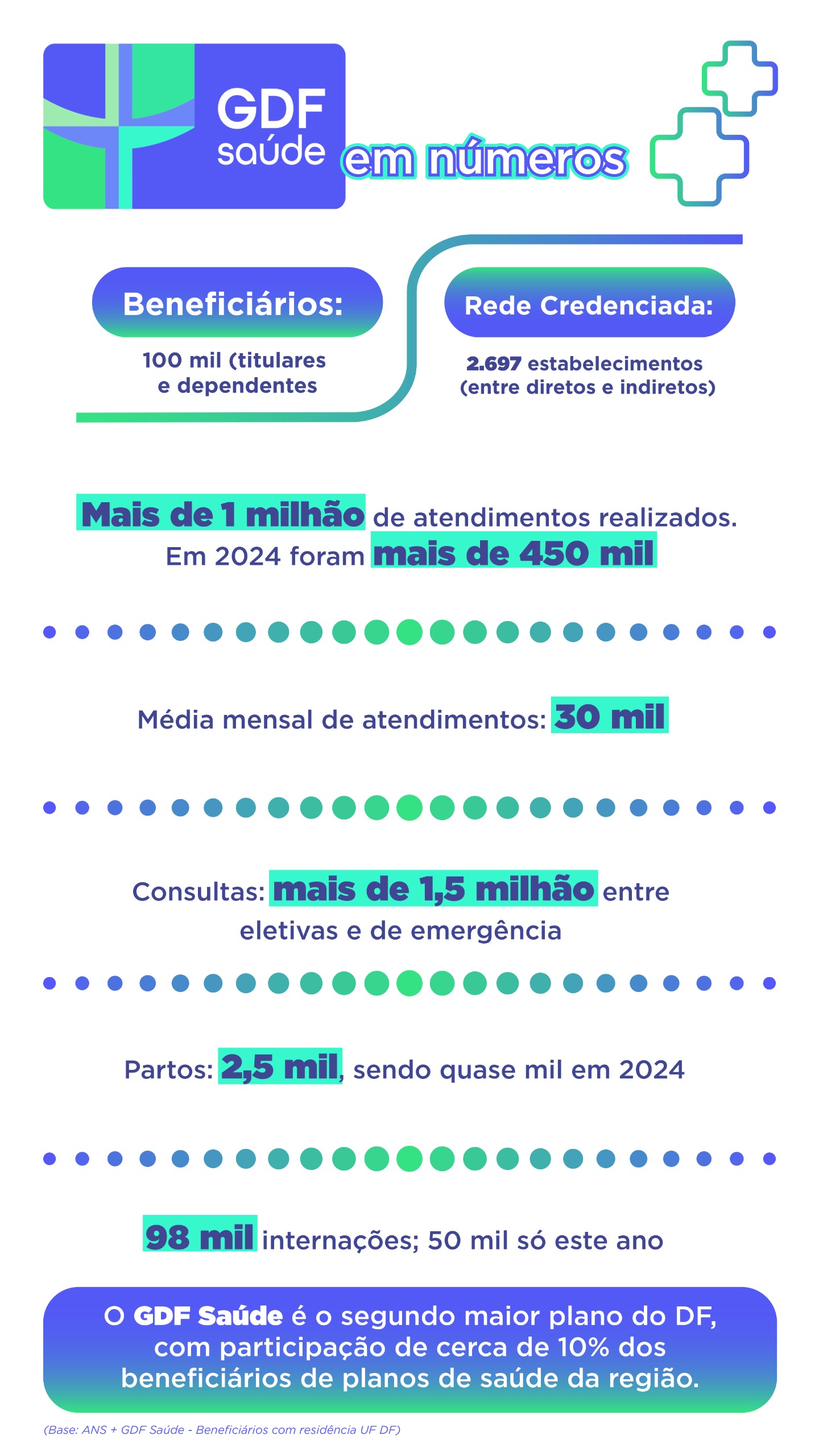 O GDF Saúde alcançou o marco de 100 mil beneficiários, entre servidores e dependentes, concretizando um dos maiores sonhos do quadro funcional distrital: a assistência suplementar à saúde. Criado há quatro anos pelo governador do Distrito Federal, Ibaneis Rocha, o plano chega ao expressivo número mantendo o compromisso com a saúde e o bem-estar dos servidores e seus familiares.