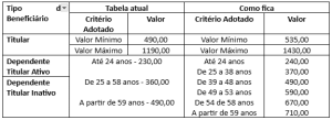 Foram criadas três novas faixas etárias indo ao encontro das regras seguidas pelas operadoras de mercado. O ajuste atende, ainda, a estudo atuarial, que apresenta diagnóstico e prevê riscos econômicos, a fim de garantir a sustentabilidade financeira a médio prazo