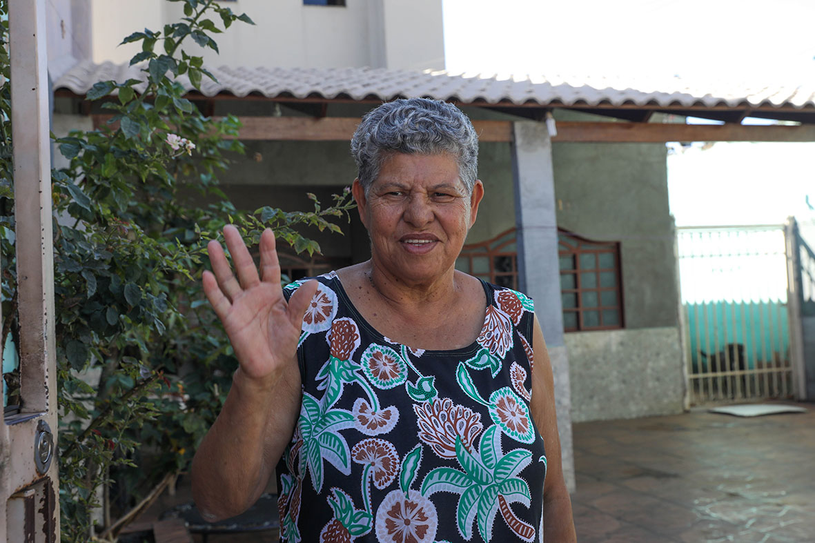 A aposentada Nair Napoleão, “apaixonada por Brasília” desde os 13 anos, não precisa mais “ficar agoniada com a escritura” do lote que recebeu de programas habitacionais em 1995: “Já vou correr atrás de outras coisas. Minha filha quer dar uma reforminha aqui em casa. É o que eu vou poder deixar para eles” | Foto: Joel Rodrigues/Agência Brasília