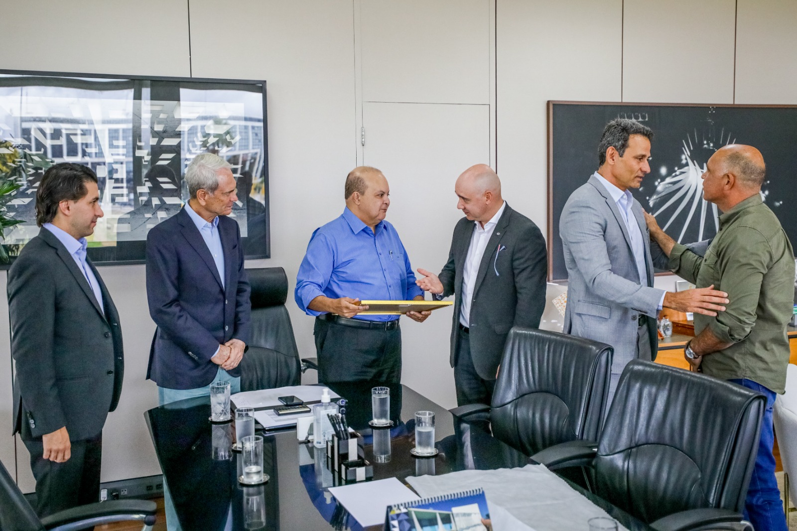 O presidente da Associação Brasileira da Indústria de Hotéis do Distrito Federal (Abih-DF), Henrique Severien, foi o responsável por entregar o diploma de honra ao mérito a Ibaneis Rocha no gabinete do governador no Palácio do Buriti. Além de Severien, participaram do encontro o secretário de Turismo, Cristiano Araújo; o presidente da Câmara Legislativa, deputado distrital Wellington Luiz, e os empresários Paulo Octávio e André Octavio Kubitschek, além de outros representantes do setor de hotelaria.