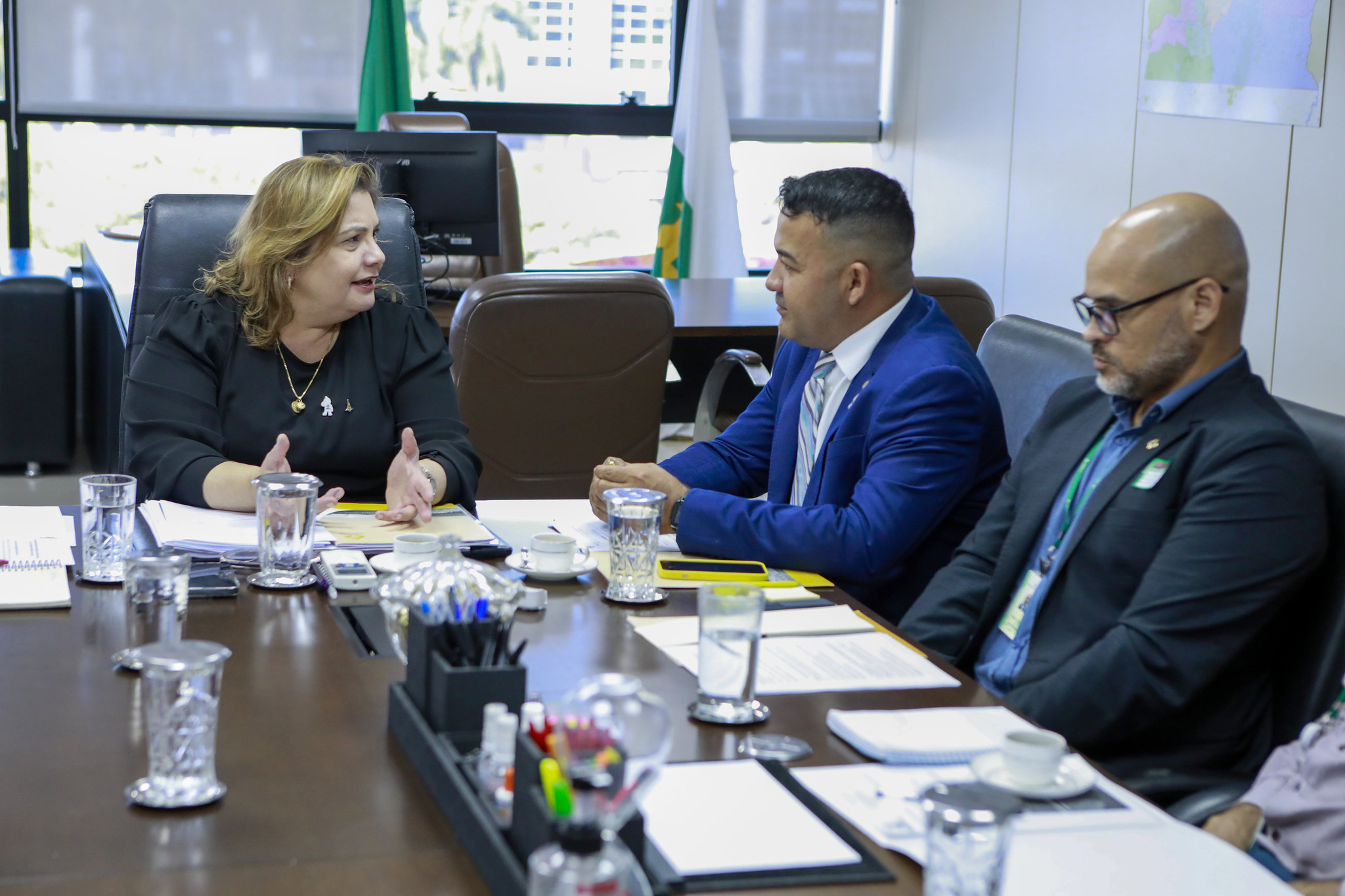 A secretária de Saúde Lucilene Florêncio em reunião com o deputado distrital Rogério Morro da Cruz, que destinou emenda para construção do Hospital de São Sebastião | Foto: Jhonatan Cantarelle/Agência Saúde-DF