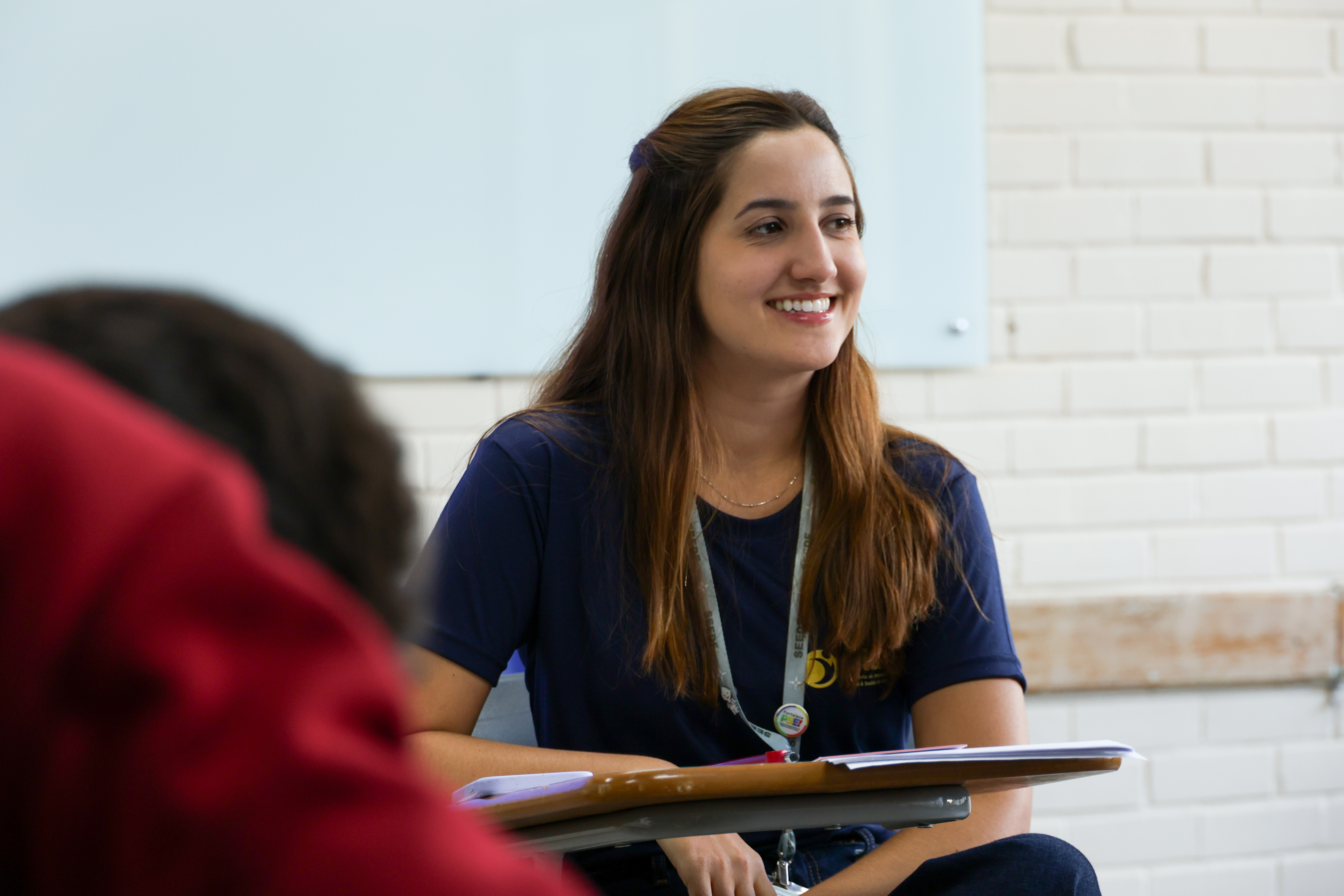 A psicóloga da Diretoria de Atendimento e Apoio à Saúde do Estudante (Diase) da SEEDF, Clara Outeiral, integra a equipe responsável pelos atendimentos preventivos e também fará parte do grupo de profissionais que acompanhará os alunos em parte do intercâmbio.