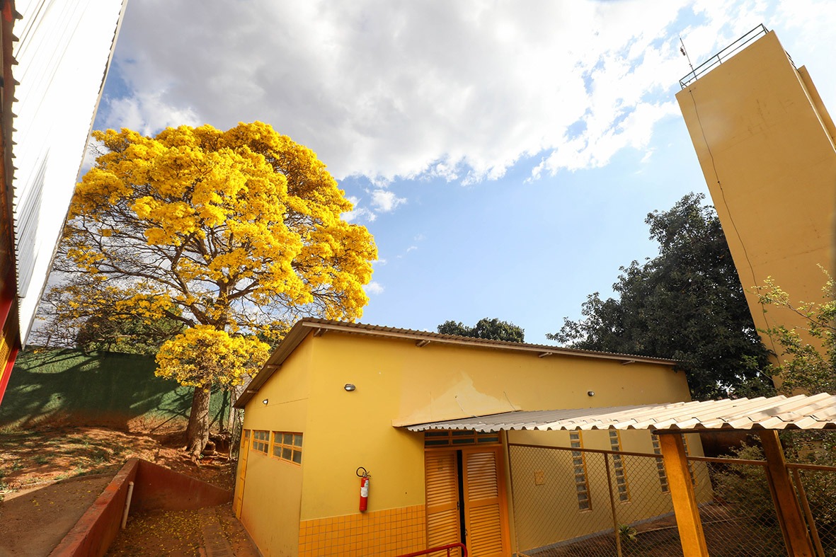 Imponente e delicado ao mesmo tempo, o ipê-amarelo do Centro de Ensino Fundamental (CEF) Metropolitana, no Núcleo Bandeirante, é um dos exemplares mais bonitos da capital e impressiona quem passa por ele. Plantado pela professora Clautenes Mourão nos primeiros anos da instituição, a árvore típica do Cerrado inspira redações e poesias dos estudantes, além de embelezar a unidade de ensino, tombada como patrimônio histórico do Distrito Federal em 1985.