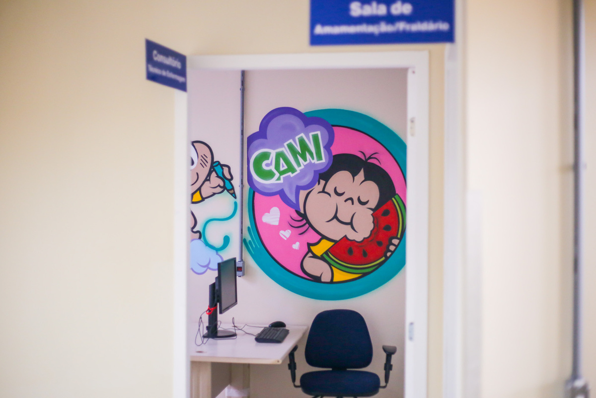 Os resultados podem ser vistos logo na entrada do Cami. Ao todo, foram 537 m² readaptados, com salas para atendimentos multidisciplinares de crianças de até 2 anos e gestantes de alto risco. Com o foco na assistência especializada, todo o local foi pensado para reunir as principais áreas de saúde necessárias. A decoração foi igualmente planejada e as paredes contam com desenhos do artista Fernando Elom, que realizou o trabalho voluntariamente. As mães dos pacientes e acompanhantes também usufruem de maior conforto com as salas separadas para amamentação e fraldário.