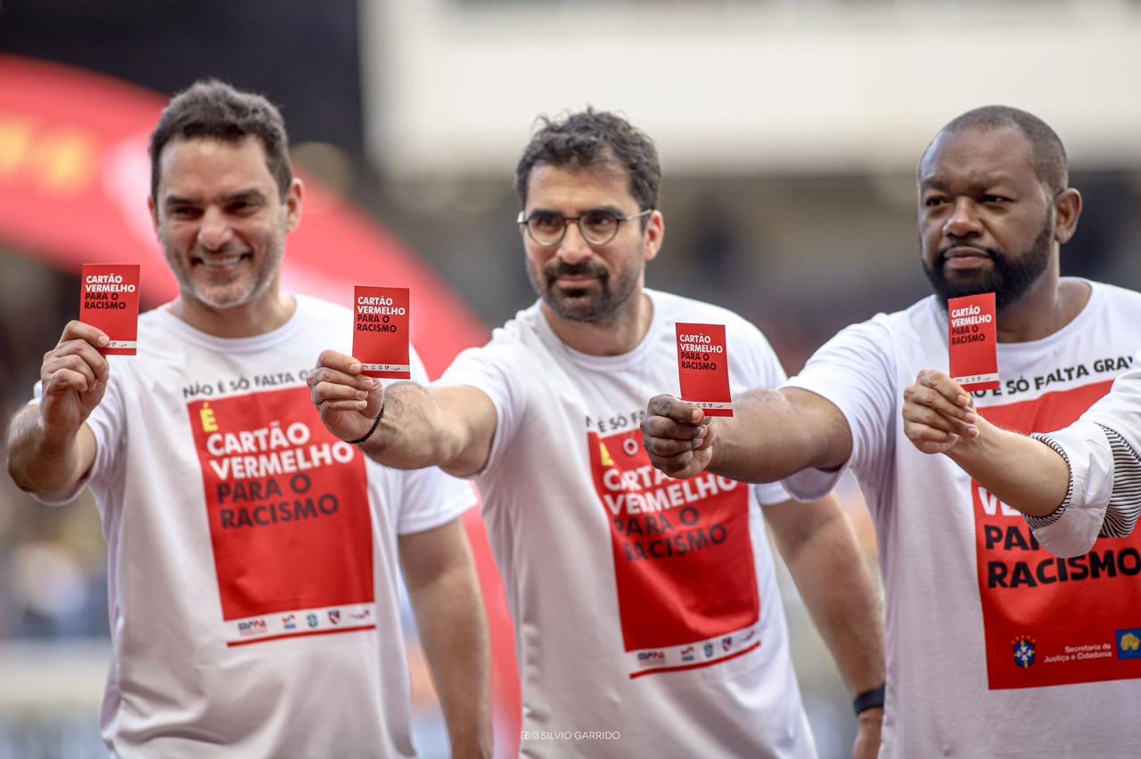 Com mais de 45 mil torcedores no Estádio Olímpico do Pará – Mangueirão, a campanha Cartão Vermelho para o Racismo estreou neste sábado (21) no Pará, durante o clássico Remo x Paysandu, pela Série B do Campeonato Brasileiro. A iniciativa, criada pela Secretaria de Justiça e Cidadania do Distrito Federal (Sejus-DF) em parceria com a Confederação Brasileira de Futebol (CBF), emocionou o público com uma forte mensagem contra o racismo nos estádios.