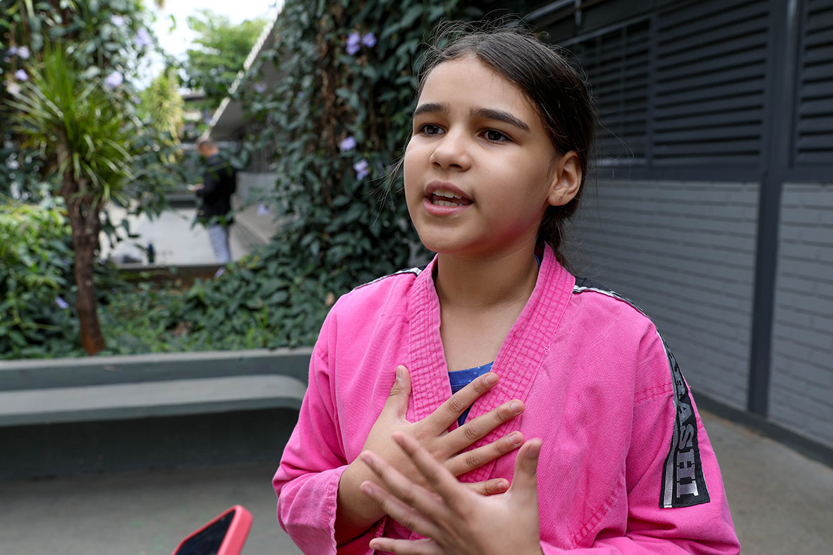 No Centro de Ensino Fundamental (CEF) 16 de Taguatinga, as práticas têm impactado positivamente na vida de jovens como a aluna Rebeca Cizele Assunção, de apenas 11 anos. De kimono rosa, a pequena já fala como a luta a transformou por completo, ajudando a diminuir a ansiedade