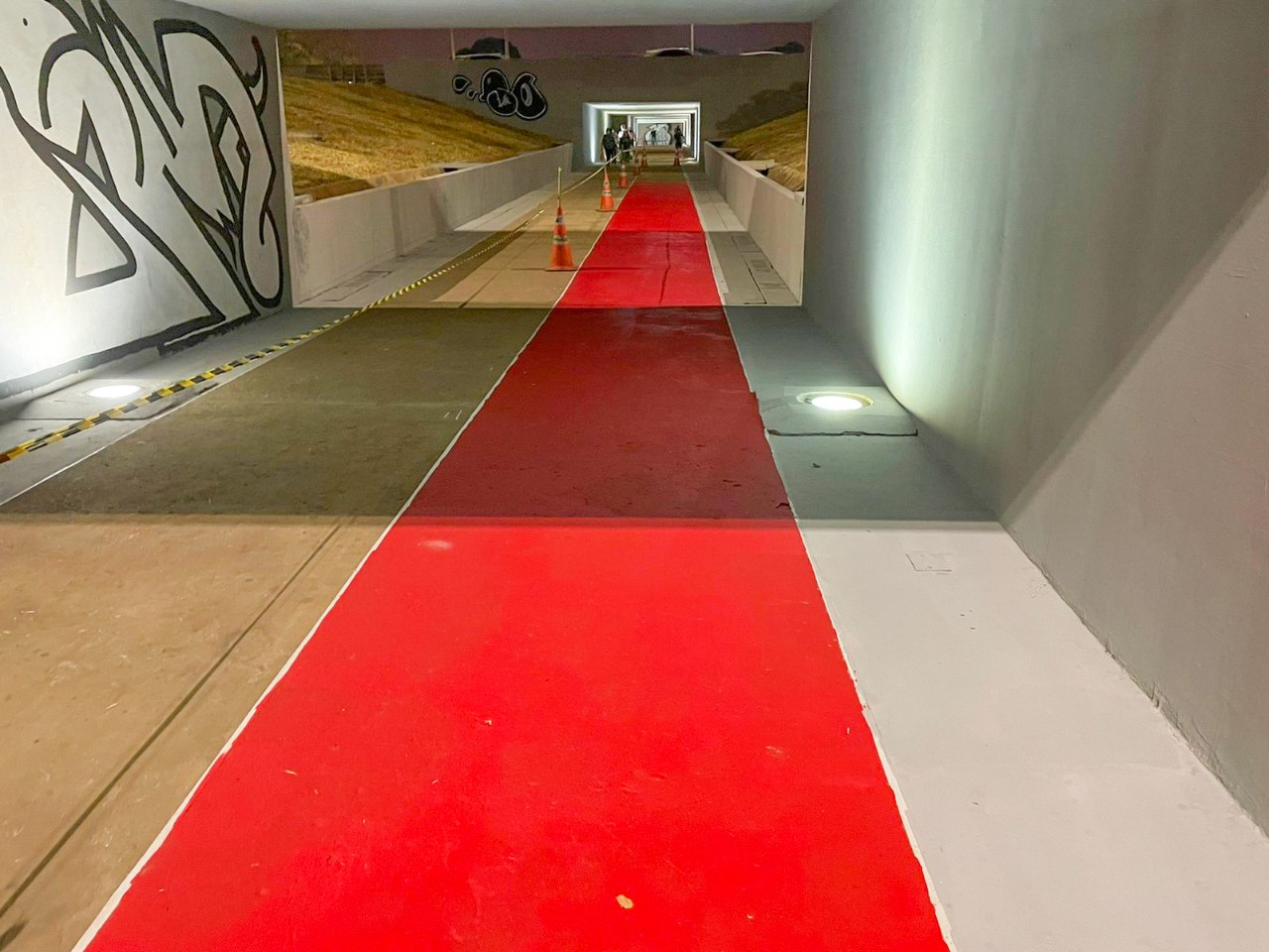 As equipes fizeram a limpeza de toda a passagem de 150 m de extensão por 5 m de largura, prosseguindo com a pintura de piso e paredes. O local receberá também 12 lixeiras novas, terá o sistema de drenagem desobstruído e passará pela troca de 20 luminárias.