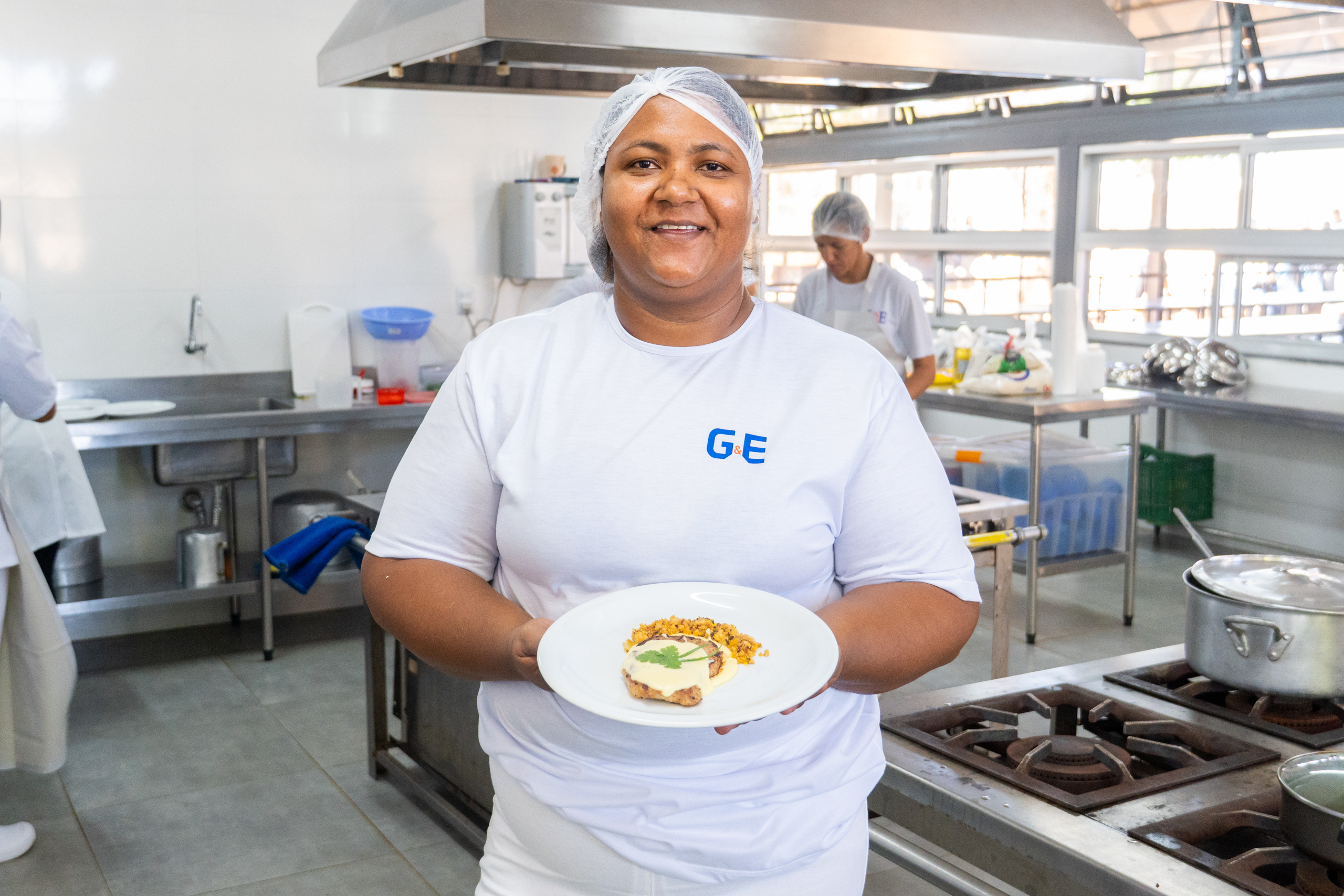 Outra semifinalista que se emocionou com a conquista foi Mislene Máximo dos Santos Rodrigues, do Centro de Ensino Fundamental (CEF) Cerâmicas Reunidas Dom Bosco. Participando pela primeira vez da disputa, ela encantou o público com o Chilli Escola, prato feito com feijão amassado, carne moída, lombo suíno, molho de tomate, manjericão e queijo muçarela.