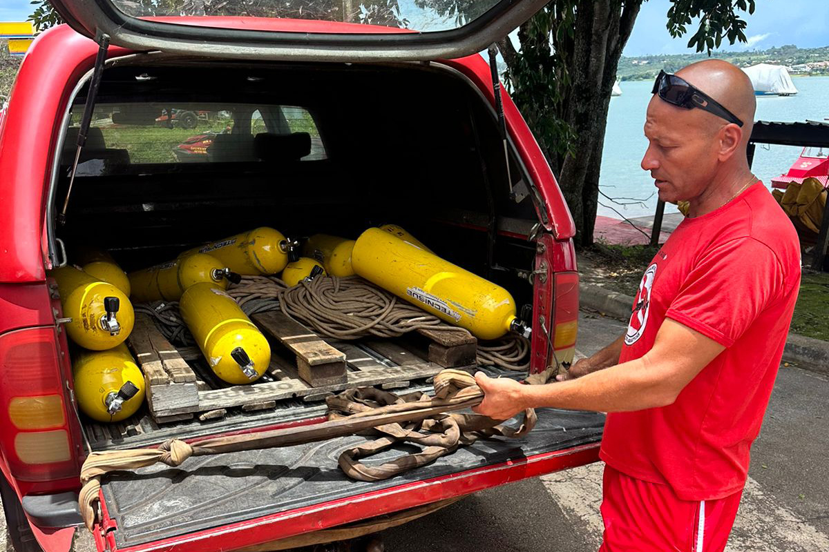Bombeiros usam ar comprimido para trazer à tona embarcações levadas para o fundo do lago