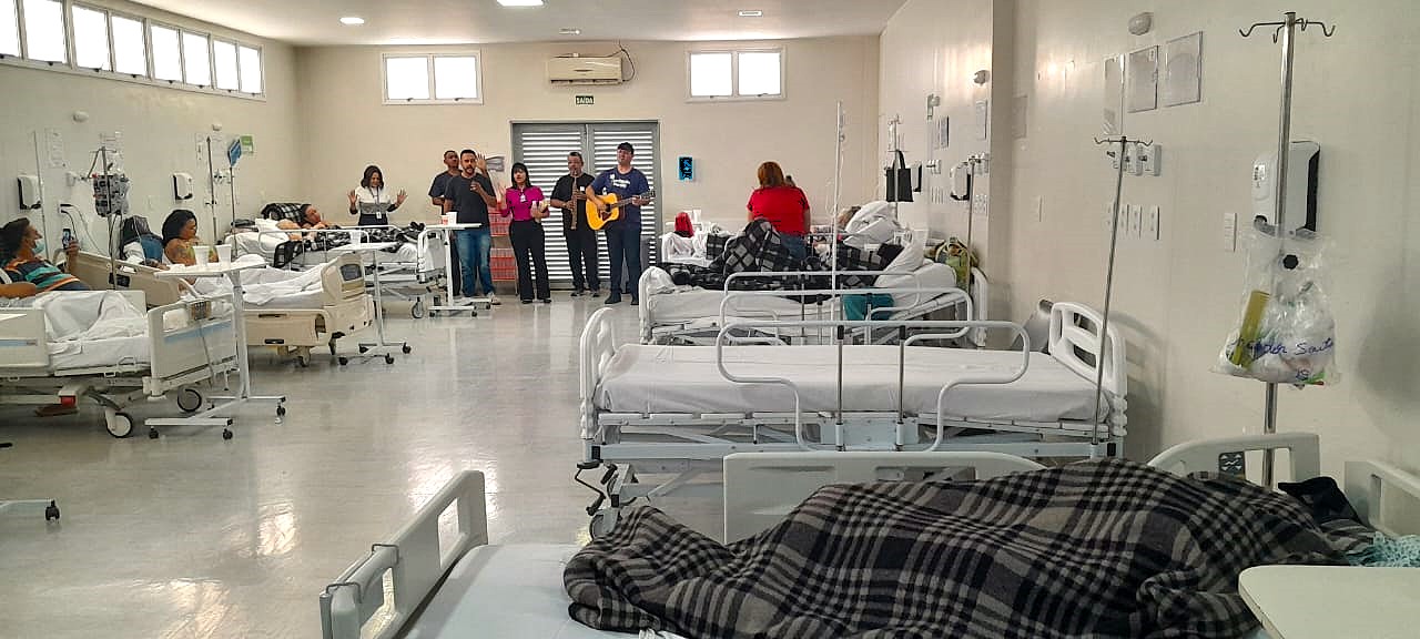 Na tarde desta segunda-feira (24), um grupo de voluntários levou música e palavras de fé aos pacientes do Hospital Cidade do Sol (HSol). A iniciativa surgiu do desejo de amigos de espalhar esperança por meio da música gospel.