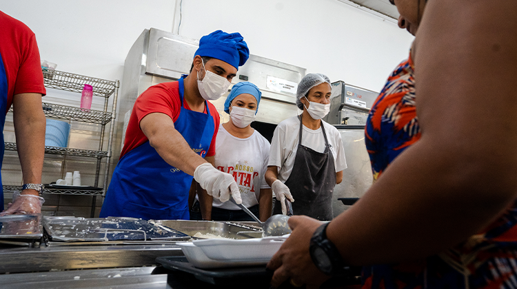 Quem preparou a refeição especial para a comunidade do Itapoã foi o próprio chef de cozinha do local há 5 anos, Jorge Salustriano. Ele expressou a sua satisfação ao fazer seu trabalho. “A minha alegria é cozinhar para esse povo. O que faço para mim é o que faço para todo mundo aqui. Eu não faço malfeito, de mau humor, não. Minha vontade é fazer todo mundo feliz. Hoje foi ótimo, gostei muito de fazer uma comida especial de Natal”, relatou.