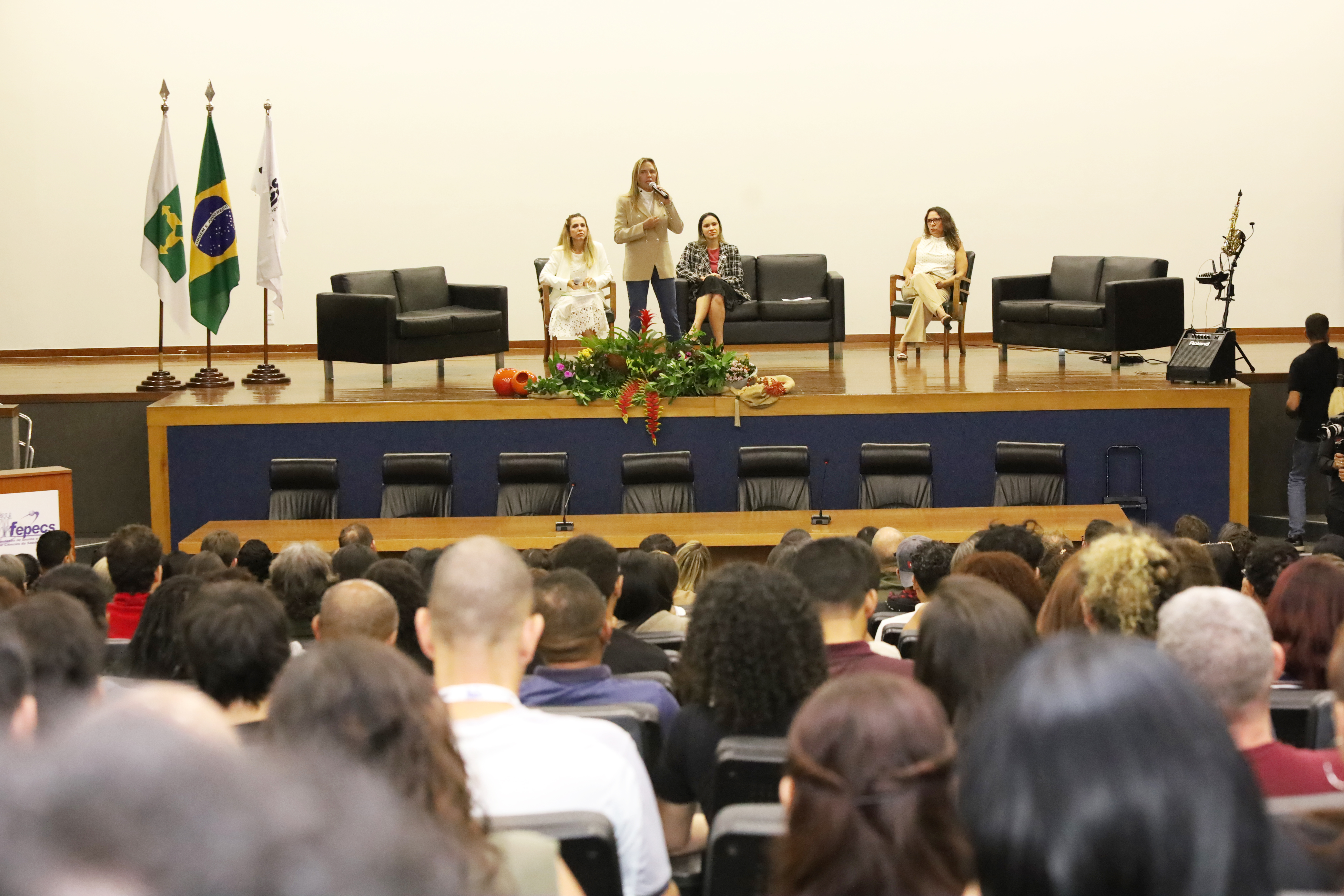 Durante a abertura, a diretora da Fepecs, Inocência Rocha Fernandes, afirmou: “Hoje vocês têm a oportunidade de ingressar em uma escola comprometida com a formação de qualidade, com um diferencial importante: iniciar um curso em novembro e, já em fevereiro do ano que vem, estar inseridos nos cenários da Secretaria de Saúde. E nada disso seria possível sem o esforço dedicado dos nossos servidores e colaboradores”.