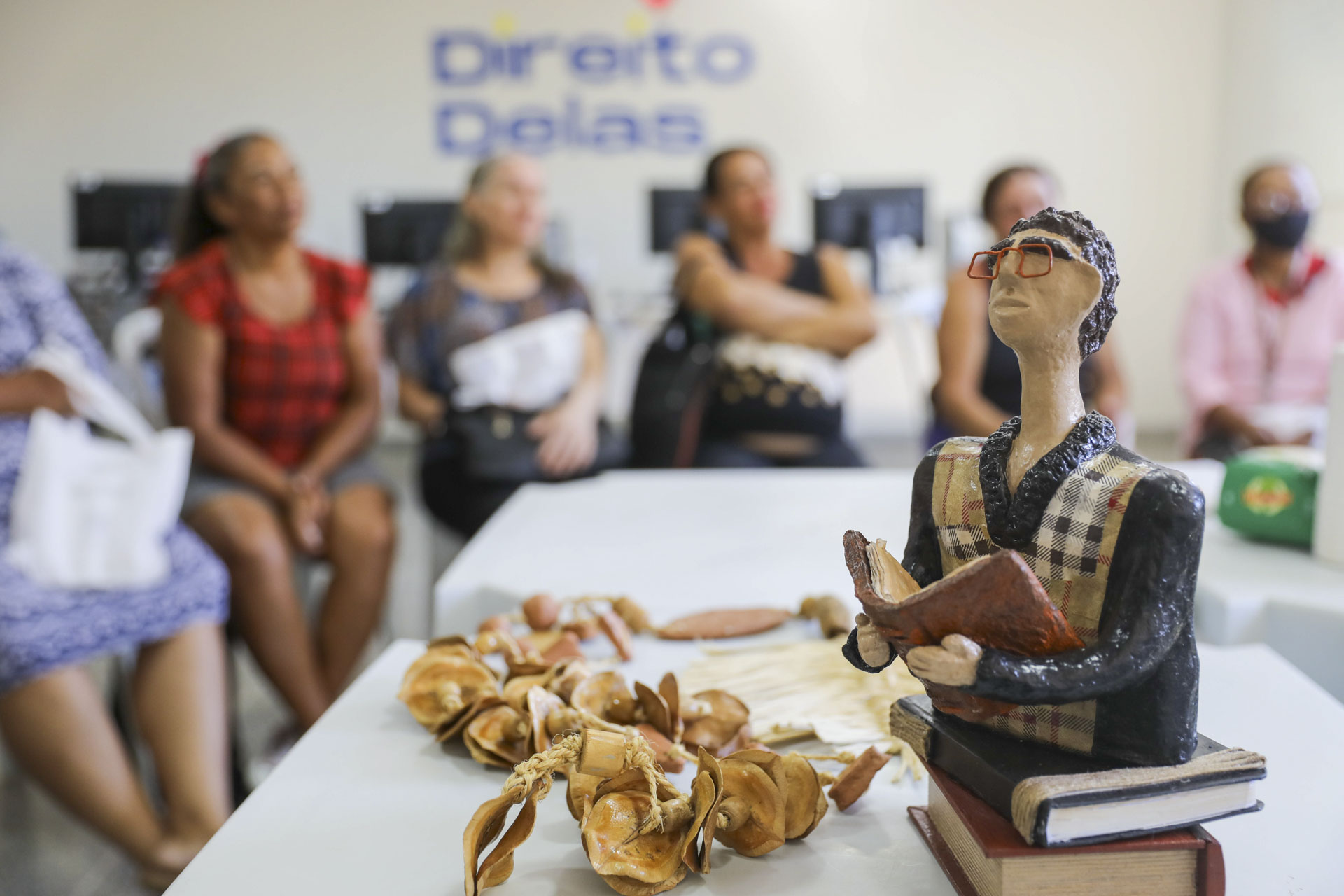Mulheres assistidas pelo Núcleo do Direito Delas participaram de oficina de papel machê; iniciativa promove capacitação para contribuir para a independência financeira | Foto: Paulo H. Carvalho/Agência Brasília