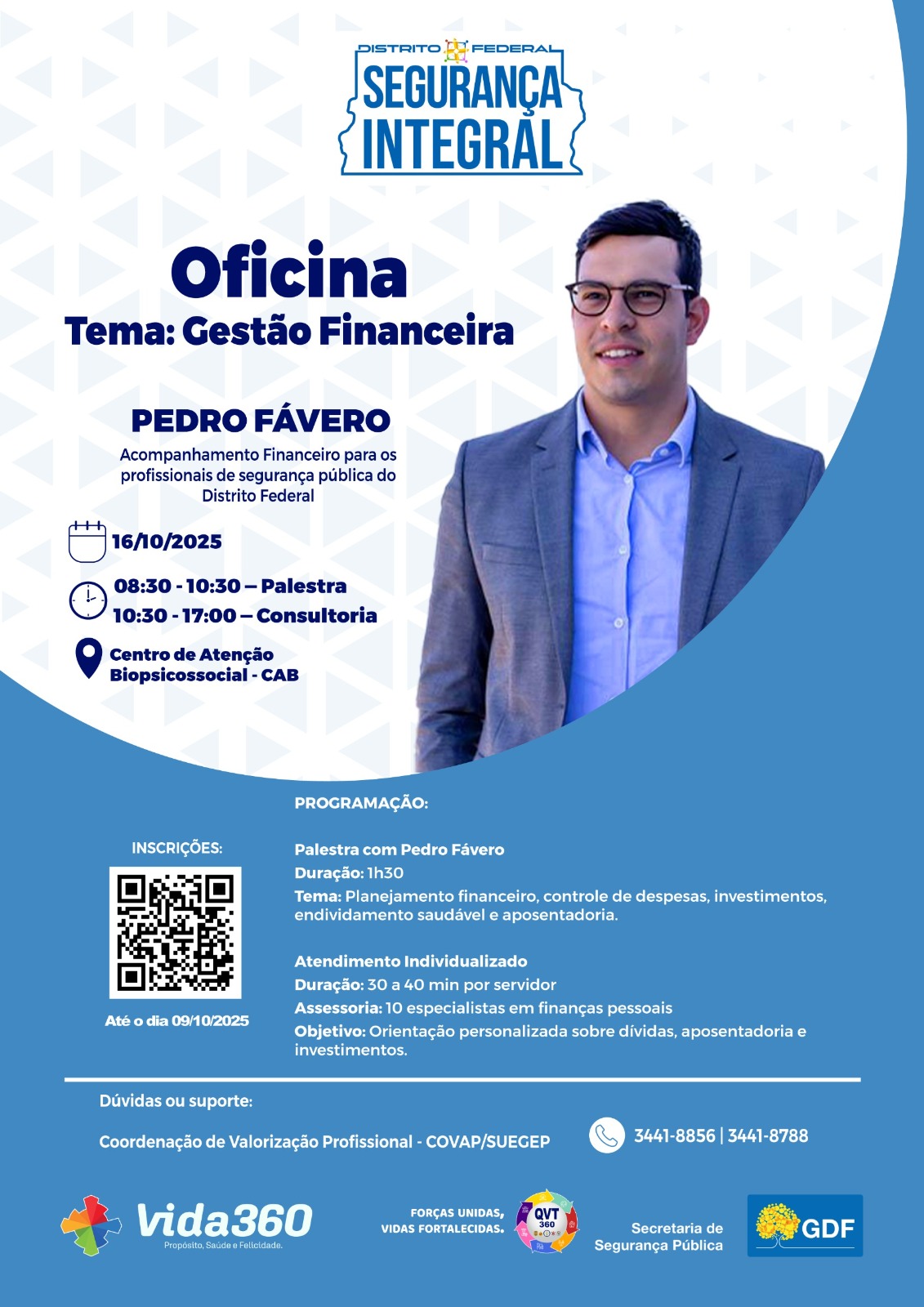 Desde o início do ciclo, o Movimento Vida 360 percorreu diferentes instituições do Sistema de Segurança Pública do Distrito Federal, levando a Oficina de Gestão Financeira para servidores do Corpo de Bombeiros Militar (CBMDF), Polícia Civil (PCDF), Polícia Militar (PMDF), Secretaria de Administração Penitenciária (Seape), Detran-DF e da própria SSP-DF.