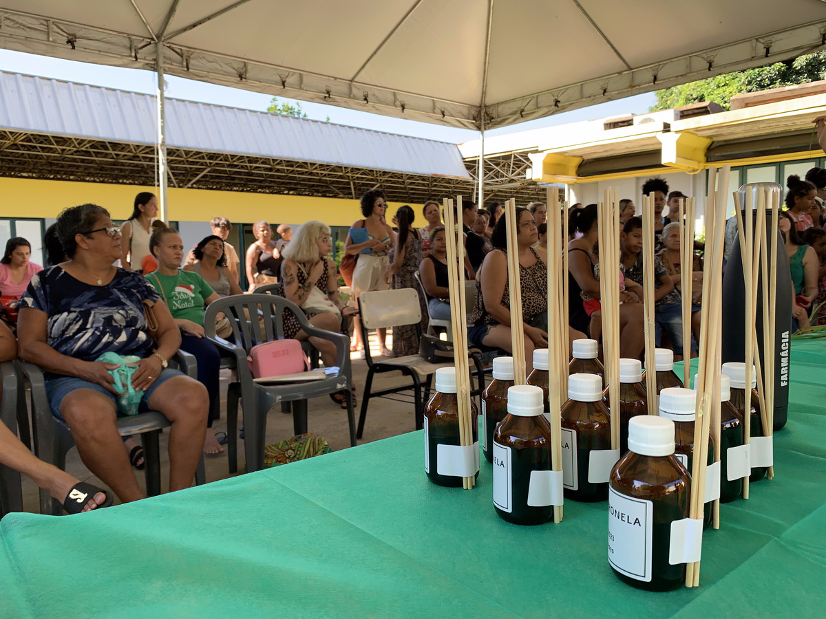 Uma forma fácil e econômica de combater o Aedes aegypti, mosquito transmissor de dengue, zika, chikungunya e febre amarela urbana. Foi com essa premissa que quase 200 participantes aprenderam a preparar o difusor com capim citronela na manhã deste sábado (9). A oficina foi ministrada pela equipe da Unidade Básica de Saúde (UBS) 1 do Riacho Fundo I, em parceria com o Núcleo Farmácia Viva e com a Associação dos Especialistas da Secretaria de Saúde (SES-DF).