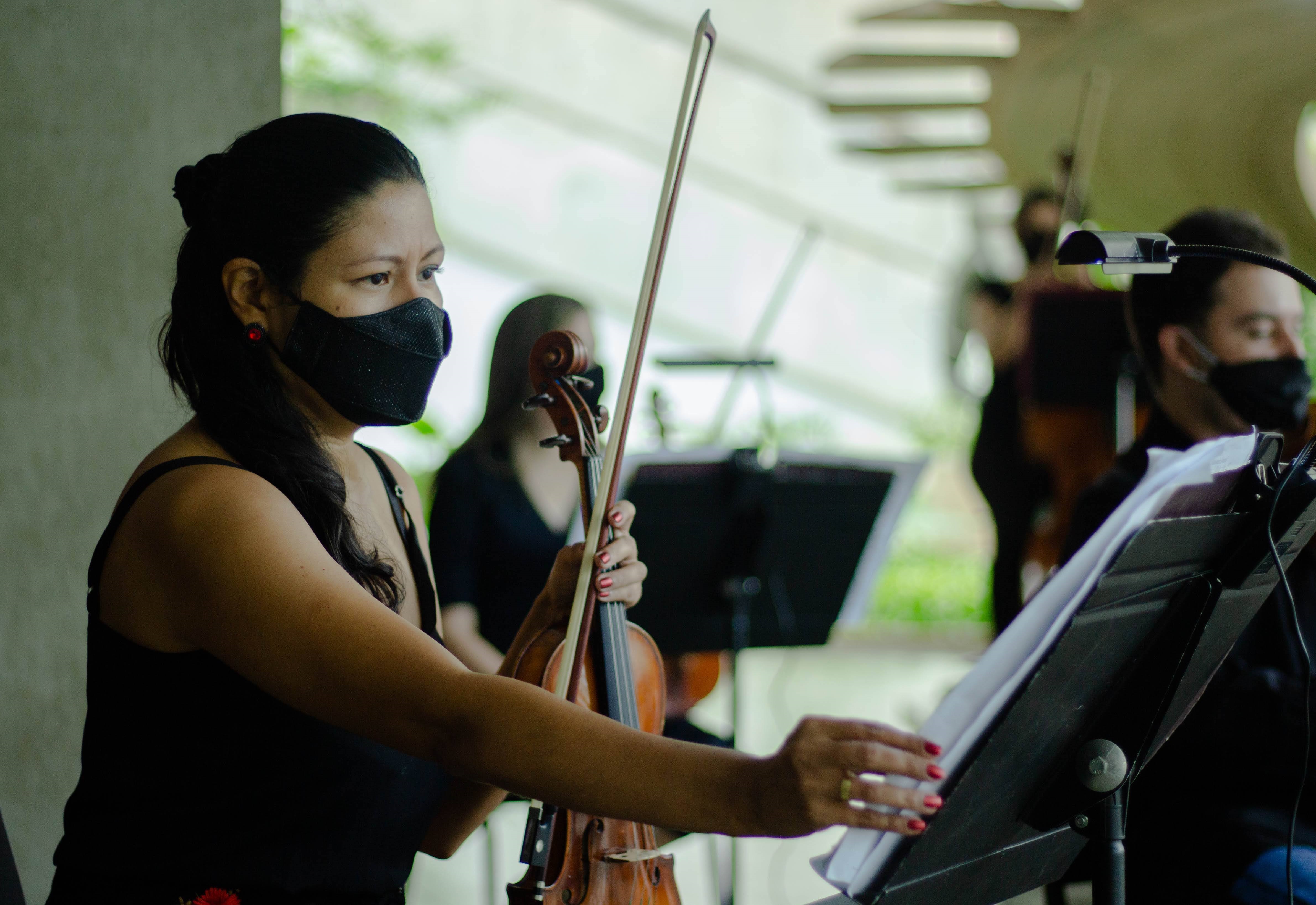 Os músicos da Orquestra Sinfônica do Teatro Nacional Claudio Santoro (OSTNCS) celebram o retorno parcial das atividades presenciais. Desde a última sexta-feira (19), o foyer da Sala Villa-Lobos, um dos destaques do teatro, virou palco de ensaios dos concertos para a nova temporada. Ao som de cordas de violinos, violas, violoncelos e contrabaixos, os musicistas iniciaram o trabalho para gravar concertos inéditos que serão transmitidos no canal da OSTNCS no YouTube.