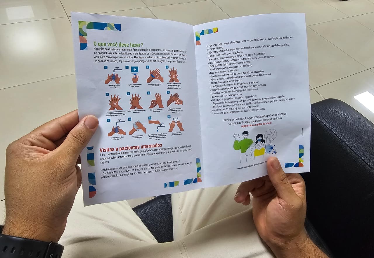 Para aproximar esse tema do público, o Nucih desenvolveu um folheto educativo que explica, de forma simples, a importância da higiene das mãos e dos cuidados com a transmissão de microrganismos. O material é distribuído a pacientes, acompanhantes, voluntários e à equipe do projeto Humanizar, que recebe treinamento específico.