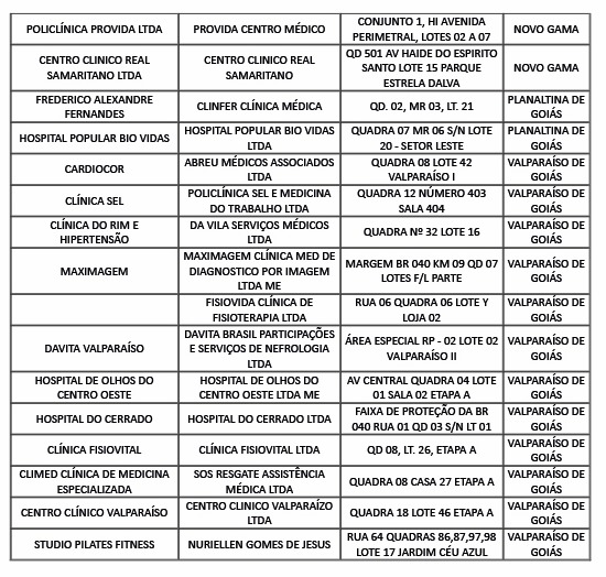 As cidades do Entorno que passam a contar com o GDF Saúde são: Formosa, Planaltina, Águas Lindas, Valparaíso, Cidade Ocidental, Luziânia e Novo Gama. Neste início, serão 40 credenciados, entre clínicas e laboratórios localizados nestas cidades, aptos a atender pelo plano. Ressaltando que este número ainda pode aumentar, com o acréscimo de outros credenciados.