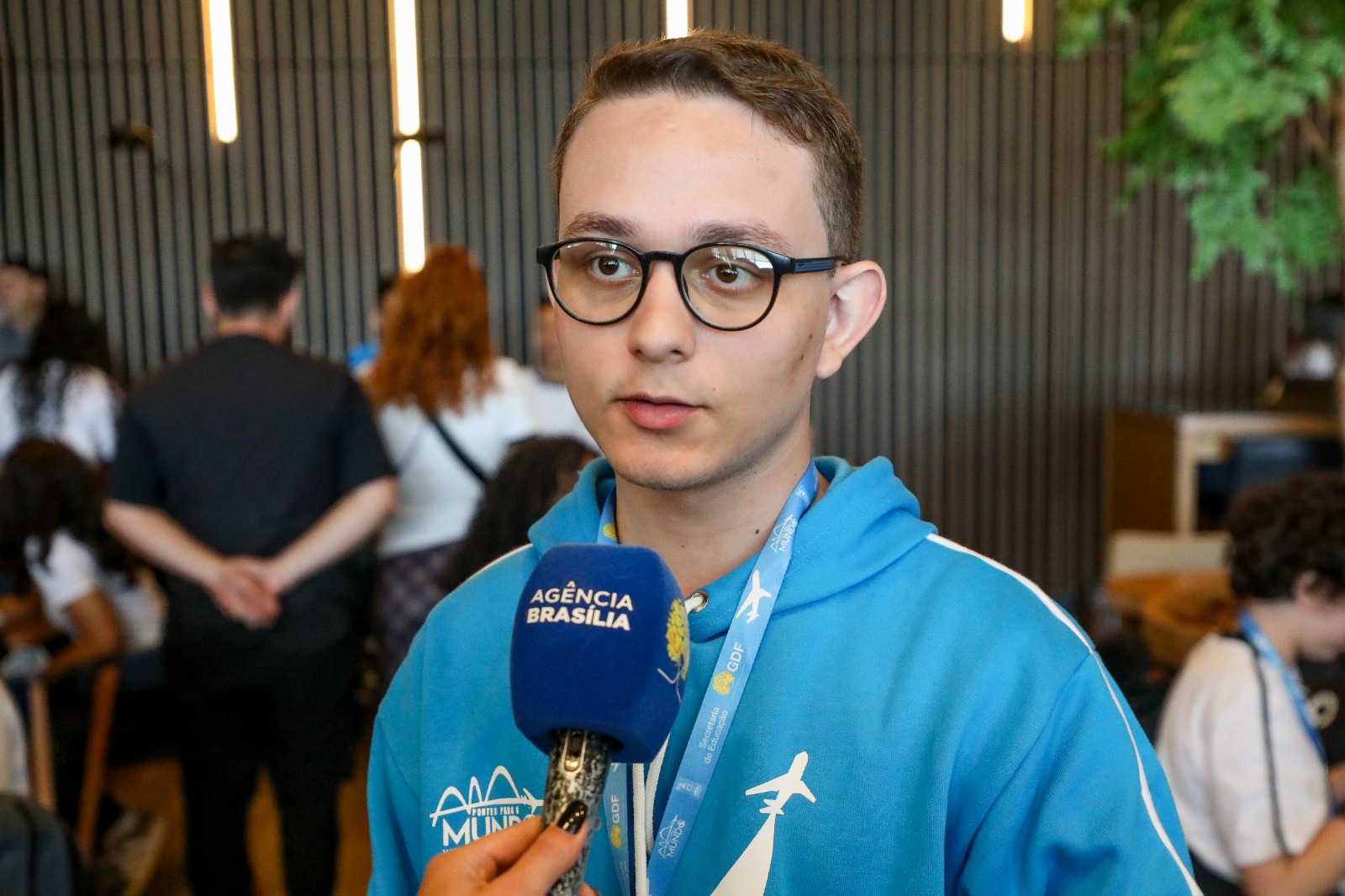 Para Cauã Diniz, 16, do Centro Educacional Stella dos Cherubins Guimarães Trois, em Planaltina, a viagem é a realização de um sonho antigo. “Estou achando o máximo”, disse. “Eu não esperava que ia acabar sendo desse jeito, não esperava nem mesmo que ia conseguir passar, e hoje estou aqui, por tudo que eu fiz em todos esses anos. Eu sempre gostei de aprender coisas novas, de querer realmente ir para fora. Minha mãe fala que, quando eu era pequeno, eu já queria meio que explorar outros lugares. Então, estou muito empolgado”.
