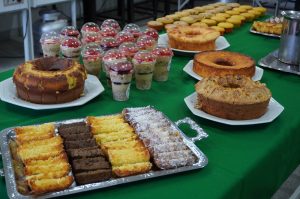 Foram preparados bolos e minibolos doces e salgados, com cenoura, banana, milho, abóbora e mandioca, além do já famoso bolo no pote