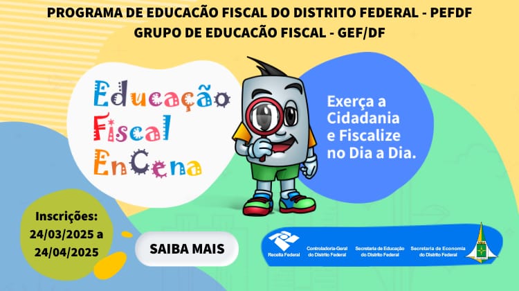 As inscrições para o Programa de Educação Fiscal do Distrito Federal (EnCena) começam na próxima segunda-feira (24) e vão até 24 de abril. O público-alvo são professores, escolas e estudantes do 4º ano do ensino fundamental ao 3º ano do ensino médio da rede pública de ensino.