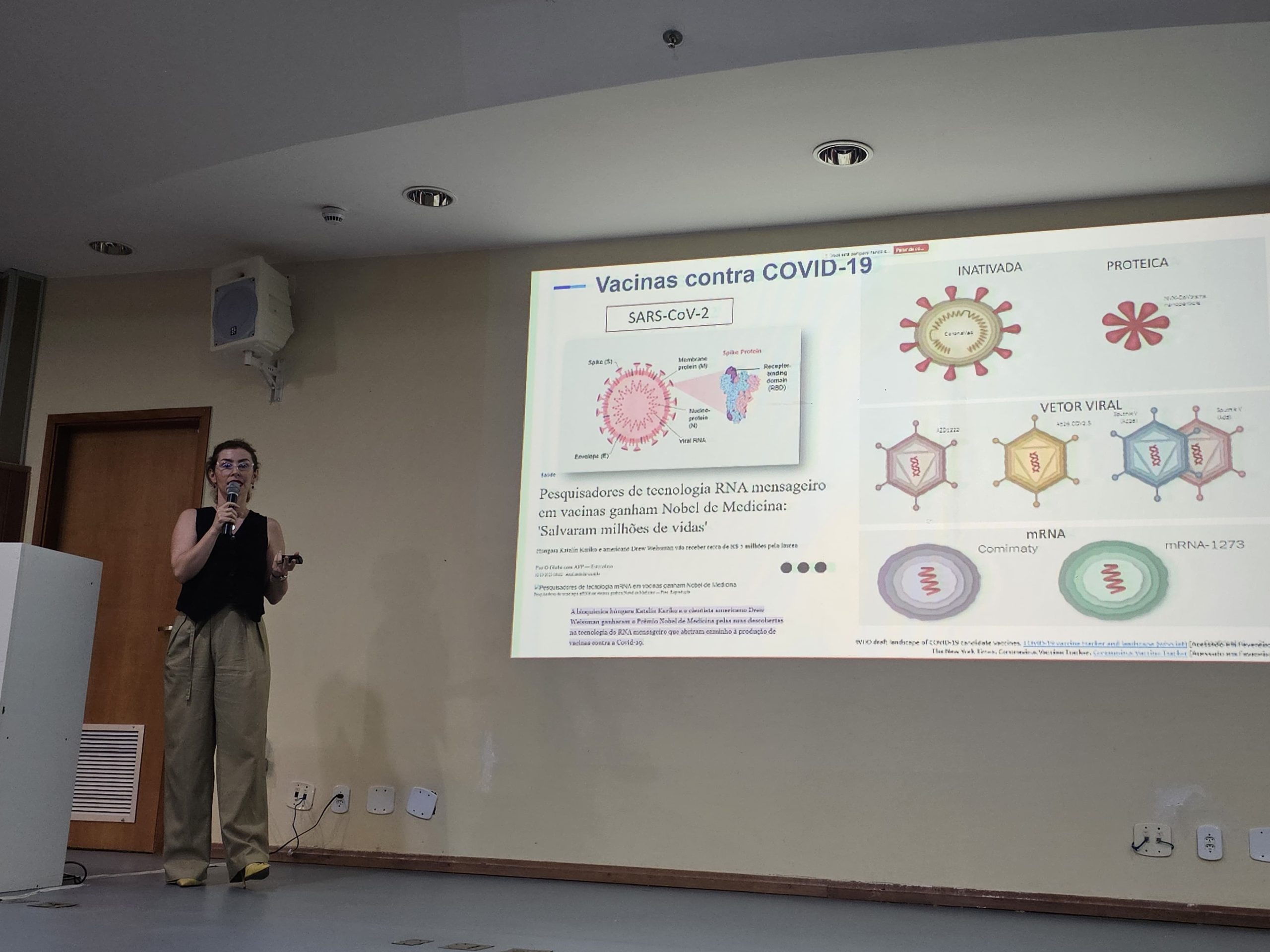 A especialista em imunologia explicou sobre a criação da vacina contra covid-19, ressaltando que já haviam estudos seguros com RNA mensageiro e por isso, a produção ocorreu tão rapidamente durante a pandemia.