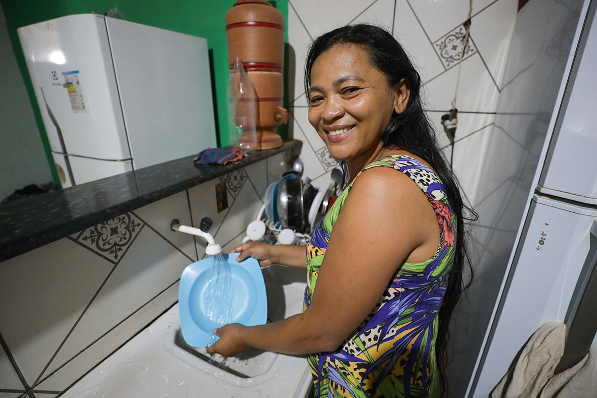 “Outros governos prometiam e não cumpriam, mas quando eu vi os carros da Caesb vindo eu me alegrei. Para a gente que viveu aqui no sofrimento, é como se eu tivesse ganhado na Mega-Sena”, diz a dona de casa Tânia Medeiros | Foto: Geovana Albuquerque/Agência Brasília