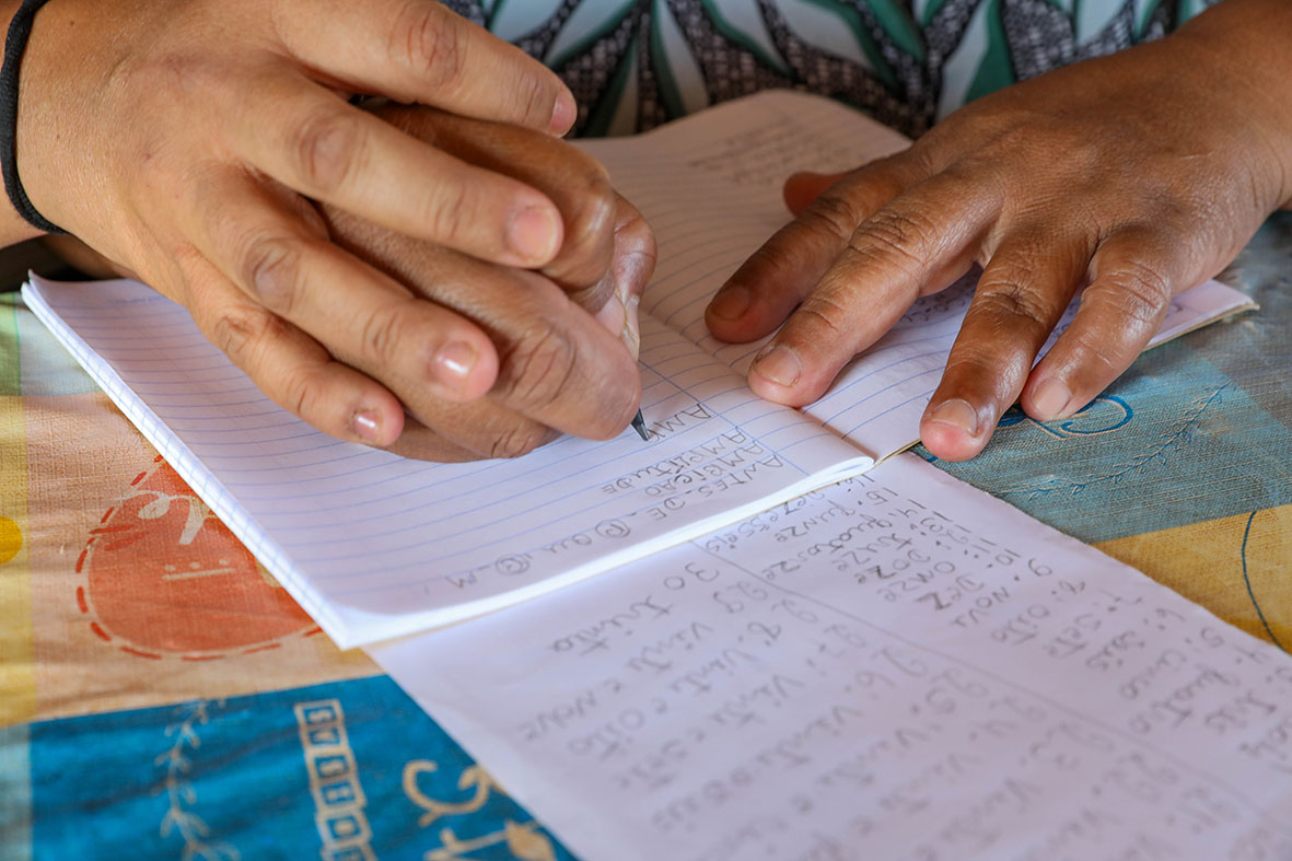 Permanecer e seguir nos estudos é a meta de Joana Batista Sousa, 54. Ela até já sabia ler e escrever, mas, ainda na infância, teve que deixar a escola após concluir o 5º ano do ensino fundamental, o que até hoje a prejudica na hora de conseguir um emprego. “Para ter ensino mais avançado, tinha que sair para a cidade, e nossos pais eram muito rígidos, não deixavam sair, e aí a gente foi ficando para trás – mas agora eu tenho uma oportunidade. Nunca é tarde para começar”, afirma.