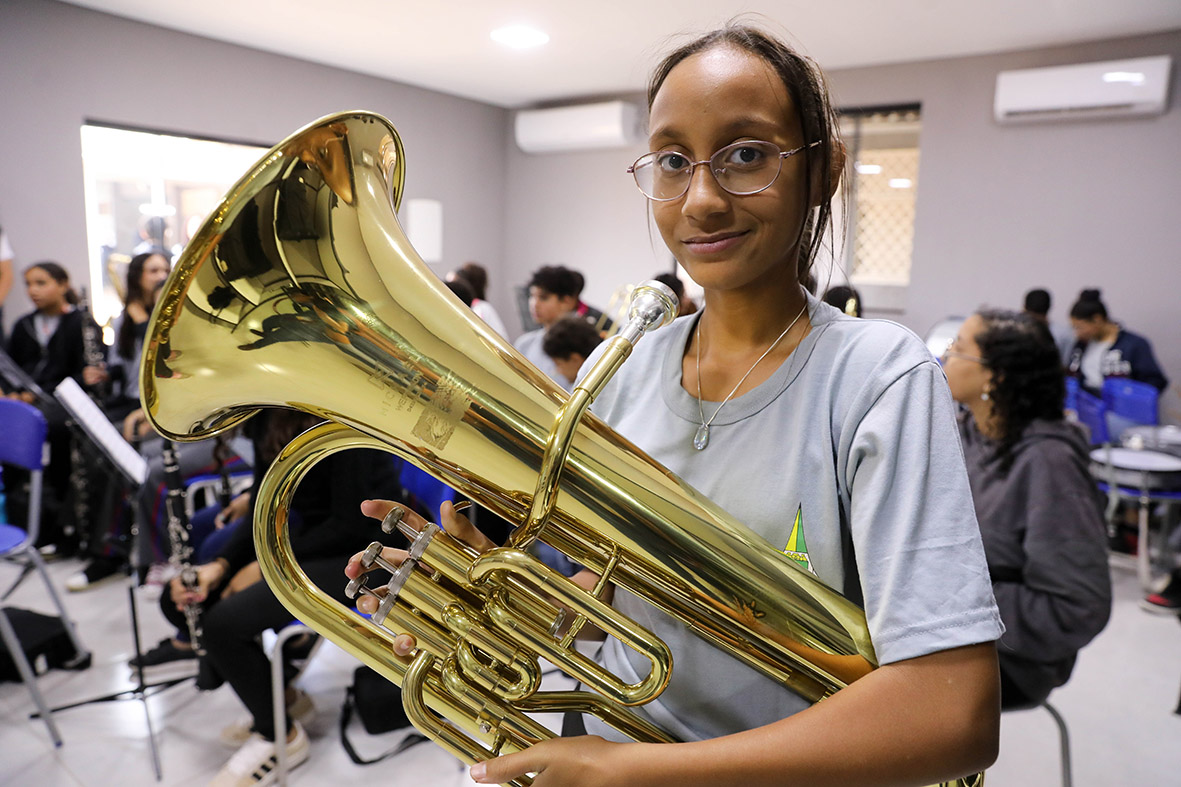 Seguir a carreira musical é um dos sonhos da aluna Emanuelle Vitória de Meira, 12. Ela conta que sempre teve vontade de aprender música, mas, no início, enfrentou descrédito. Chegou a tocar flauta na igreja, mas acabou se afastando. “Sempre que eu tentava tocar alguma coisa, as pessoas falavam que eu não ia conseguir, que não ia dar certo”, relata.