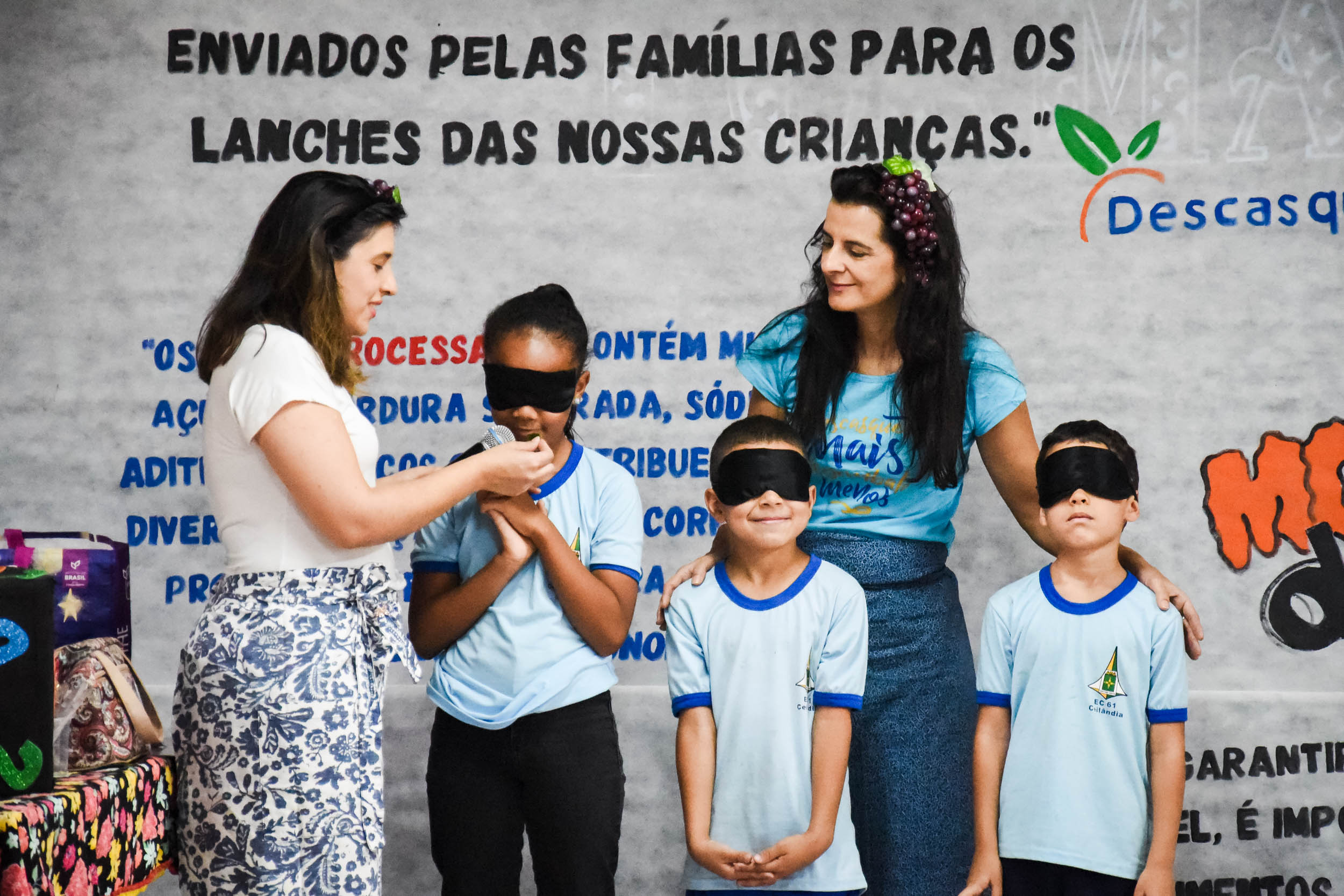 Em um outro momento, alguns alunos escolhidos foram vendados e tiveram que adivinhar os alimentos pelo tato, olfato e paladar. “Eu aprendi que a gente deve trazer coisas saudáveis para escola, como frutas – maçã, banana, morango. E comer isso em casa também. Eu gostei muito das atividades”, comenta Miguel da Silva Araújo, estudante da Escola Classe 61 de Ceilândia.