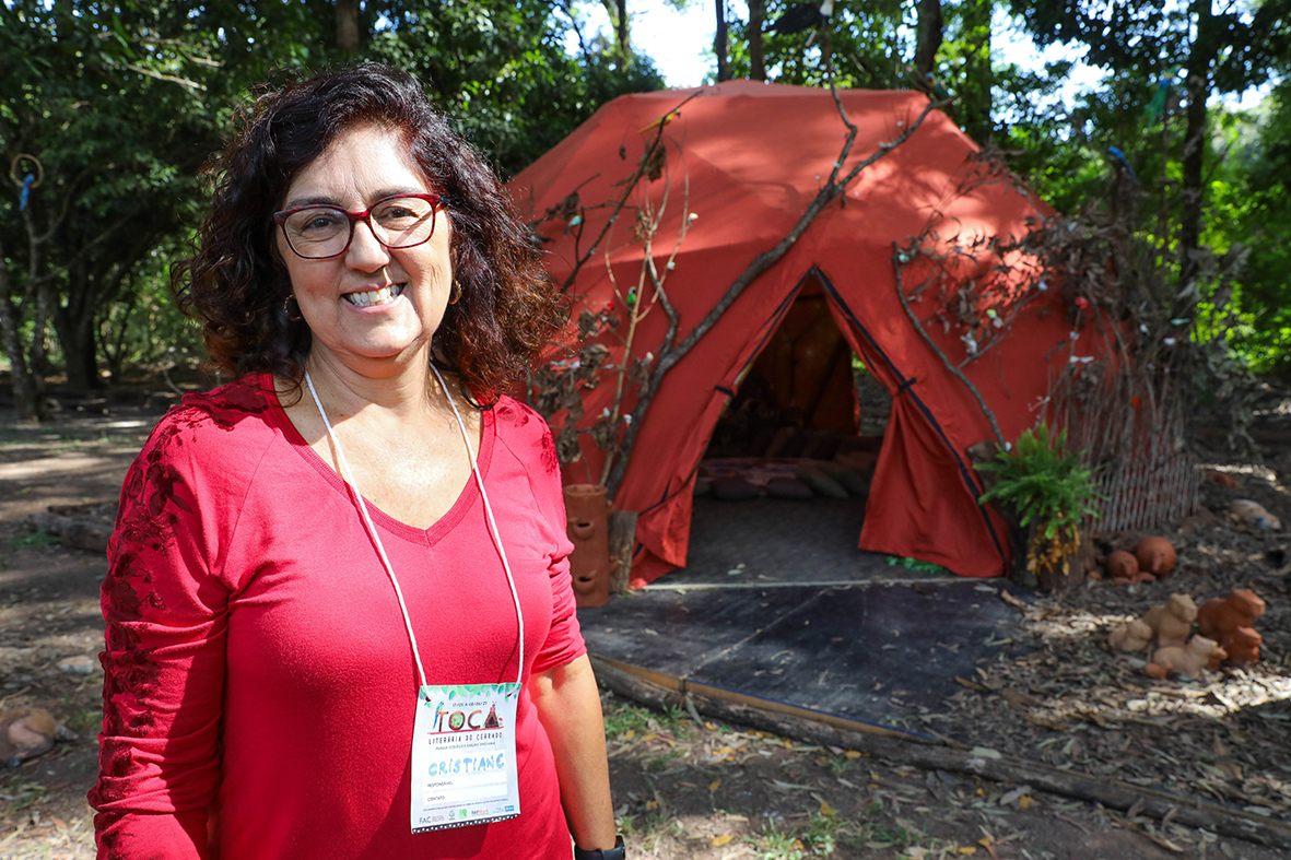 Para Cristiane Sales, o Toca Literária estimula a imaginação: “A gente começa com um passeio ao redor da toca, depois entramos e tem os bichos maravilhosos do cerrado, tanto de pelúcia como em esculturas de madeira”