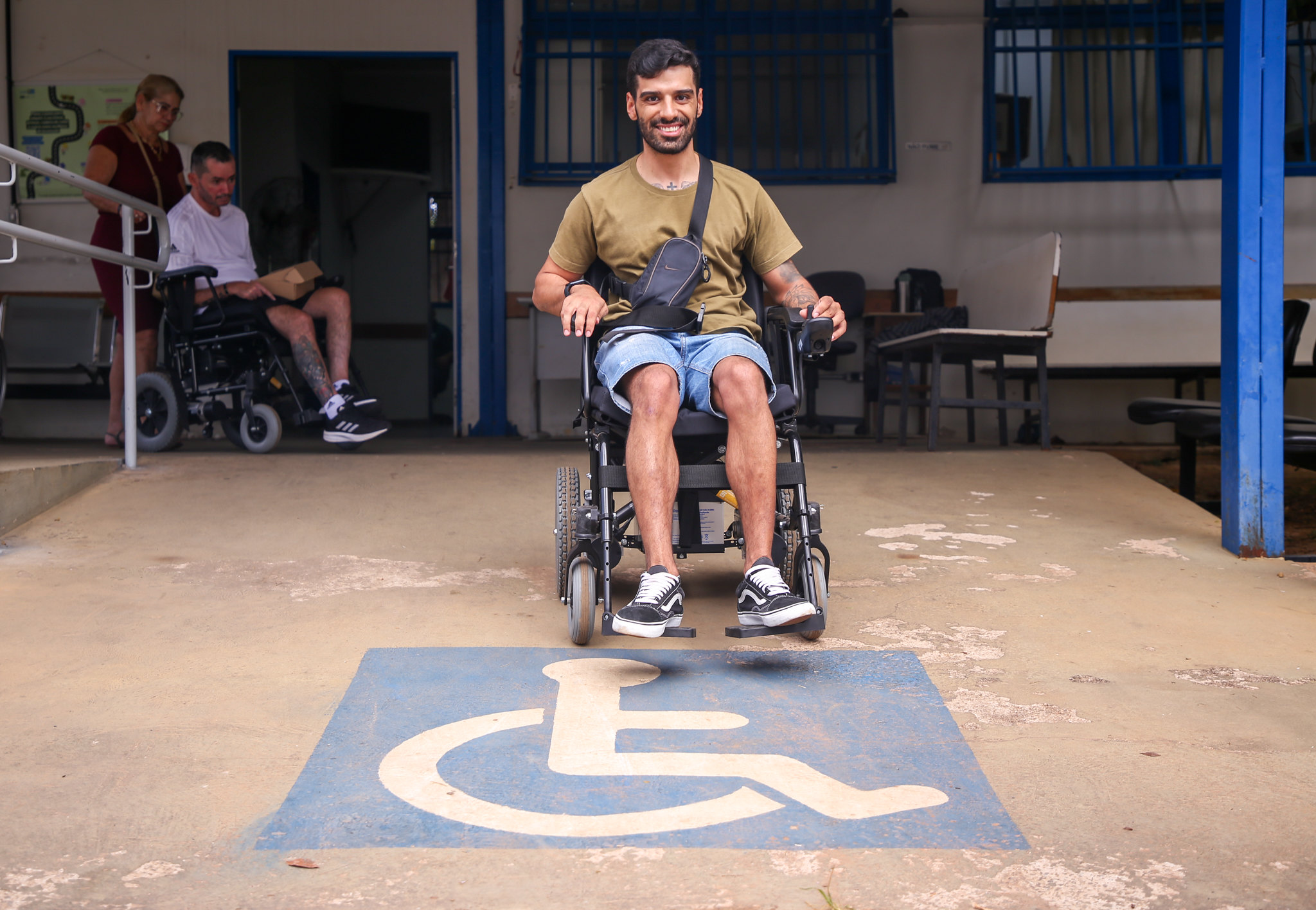Andrei Noronha, 32, não escondia a alegria por receber sua cadeira com controle joystick. Em 2018, o morador de Samambaia foi diagnosticado com ataxia espinocerebelar tipo 3 (SCA3), uma doença neurodegenerativa que afeta o sistema nervoso e compromete a coordenação motora e o equilíbrio. “É muito bom estar amparado e receber esse conforto do Estado em um momento tão difícil da nossa vida”, descreve.