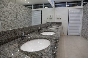 As novas instalações incluem banheiros totalmente reestruturados, com reforma completa, da parte hidráulica ao acabamento